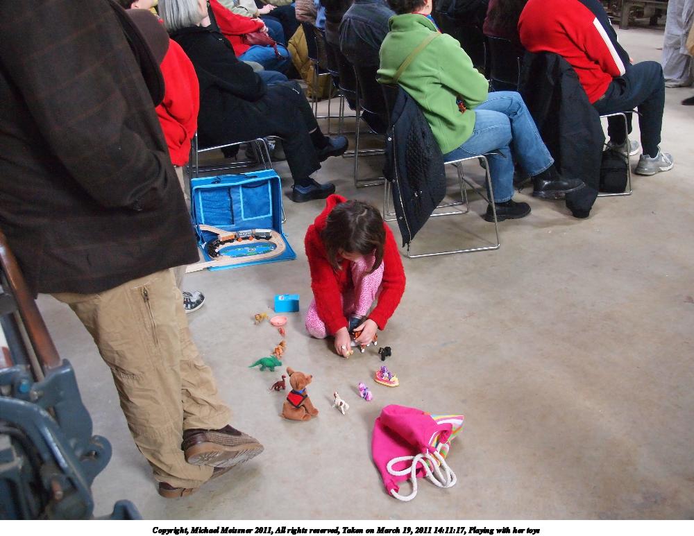 Picture #26: Playing with her toys 1000x773, 121,443 bytes (119K), (html file) Copyright, Michael Meissner 2011, All rights reserved Olympus E-P2 camera with Olympus-m43 14-150mm f/4.0-5.6 lens f/4.5, ISO 1600, 1/60 sec, 20.0mm, auto mode, vivid color, matrix metering, auto + manual focus, IS1 (All Direction Shake IS) 35mm equivalent focal length 40.0mm Programs used: raw therapee Taken by Michael Meissner on March 19, 2011 14:11:17 Last modified on March 27, 2011 at 21:38 |