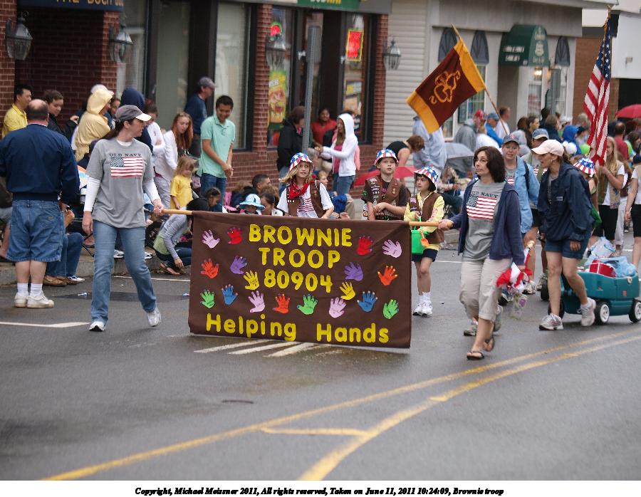 Picture #105: Brownie troop #2 900x698, 121,725 bytes (119K), (html file) Copyright, Michael Meissner 2011, All rights reserved Olympus E-3 camera with Olympus 50-200mm f/2.8-3.5 lens f/2.8, ISO 125, 1/200 sec, 88.0mm, auto mode, natural color, SHQ, center weight metering, IS1 (All Direction Shake IS) 35mm equivalent focal length 176.0mm Programs used: raw therapee Taken by Michael Meissner on June 11, 2011 10:24:16 Last modified on August 27, 2011 at 23:26 |
