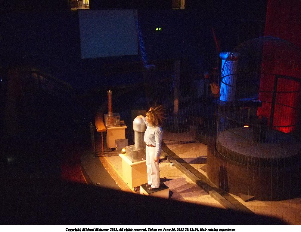 Picture #22: Hair raising experience 1000x773, 184,466 bytes (181K), (html file) Copyright, Michael Meissner 2011, All rights reserved Olympus E-P2 camera with Olympus-m43 14-150mm f/4.0-5.6 lens f/4.2, ISO 400, FL-36 flash (+0.33 flash compensation), 1/60 sec, 18.0mm, auto mode, vivid color, SHQ, matrix metering, auto + manual focus, IS1 (All Direction Shake IS) 35mm equivalent focal length 36.0mm Programs used: raw therapee Taken by Michael Meissner on June 16, 2011 18:43:11 Last modified on August 28, 2011 at 09:26 |