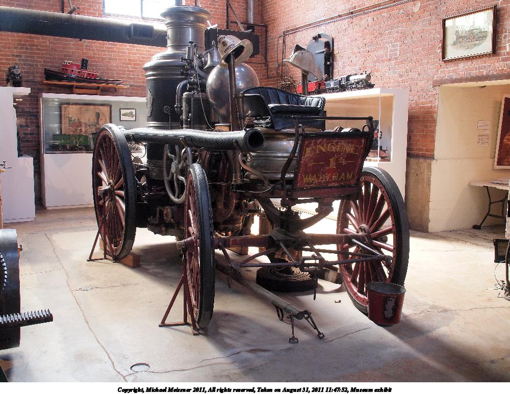Picture #11: Museum exhibit #6 Thumb: 500x375, 50,357 bytes (50K) Small: 1000x773, 165,790 bytes (162K), (html file) Copyright, Michael Meissner 2011, All rights reserved Olympus E-P2 camera with Olympus-m43 14-150mm f/4.0-5.6 lens f/8.0, ISO 200, FL-36 flash (+0.33 flash compensation), 1/60 sec, 15.0mm, aperture priority, vivid color, auto gradation, SHQ, matrix metering, auto + manual focus, IS1 (All Direction Shake IS) 35mm equivalent focal length 30.0mm Extra equipment used: Olympus FL-36 flash Programs used: raw therapee Taken by Michael Meissner on August 31, 2011 11:43:40 Last modified on October 21, 2011 at 08:48 |