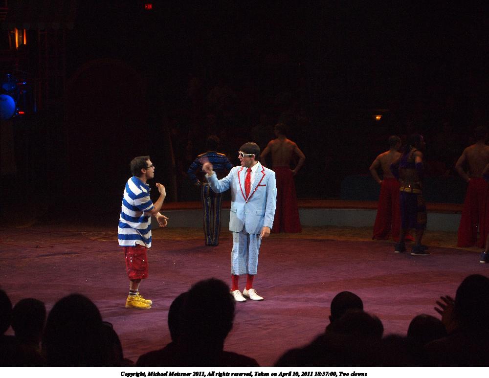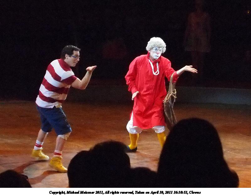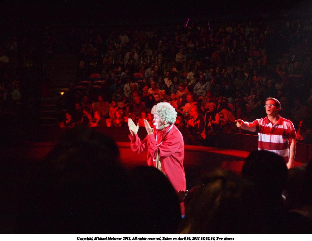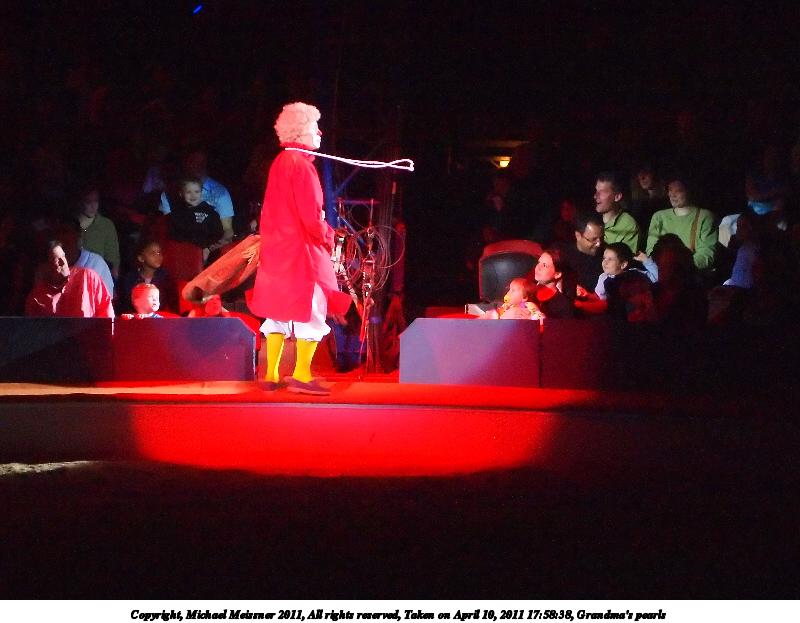 Picture #55: Two clowns 1000x773, 90,489 bytes (89K), (html file) Copyright, Michael Meissner 2011, All rights reserved Olympus E-P2 camera with Olympus-m43 14-42mm f/3.5-5.6 lens f/5.6, ISO 1250, 1/80 sec, 38.0mm, auto mode, vivid color, spot metering, IS1 (All Direction Shake IS), noise reduction auto 35mm equivalent focal length 76.0mm Programs used: raw therapee Taken by Michael Meissner on April 10, 2011 18:05:14 Last modified on April 13, 2011 at 07:48 |