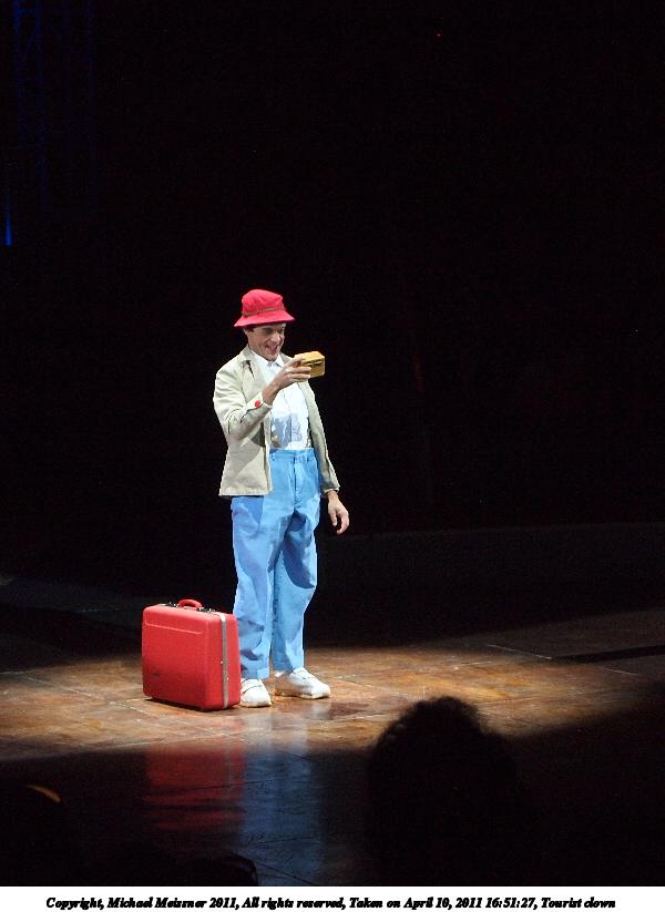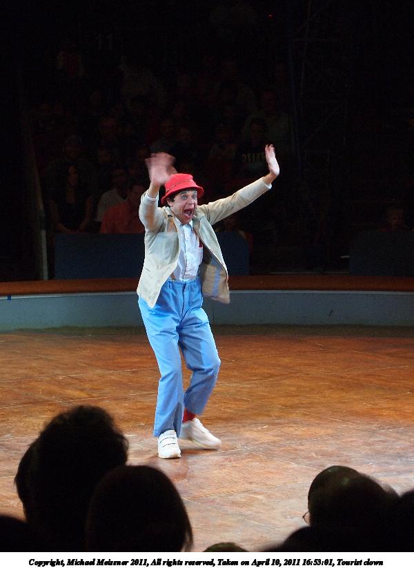 Picture #10: Tourist clown #2 600x823, 61,547 bytes (61K), (html file) Copyright, Michael Meissner 2011, All rights reserved Olympus E-P2 camera with Olympus-m43 14-42mm f/3.5-5.6 lens f/5.6, ISO 640, 1/100 sec, 42.0mm, auto mode, vivid color, spot metering, auto + manual focus, IS1 (All Direction Shake IS) 35mm equivalent focal length 84.0mm Programs used: gimp, raw therapee Taken by Michael Meissner on April 10, 2011 16:52:12 Last modified on April 13, 2011 at 00:03 |