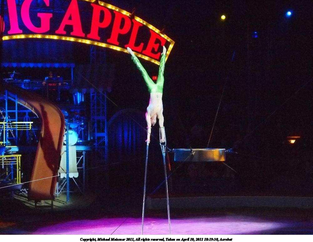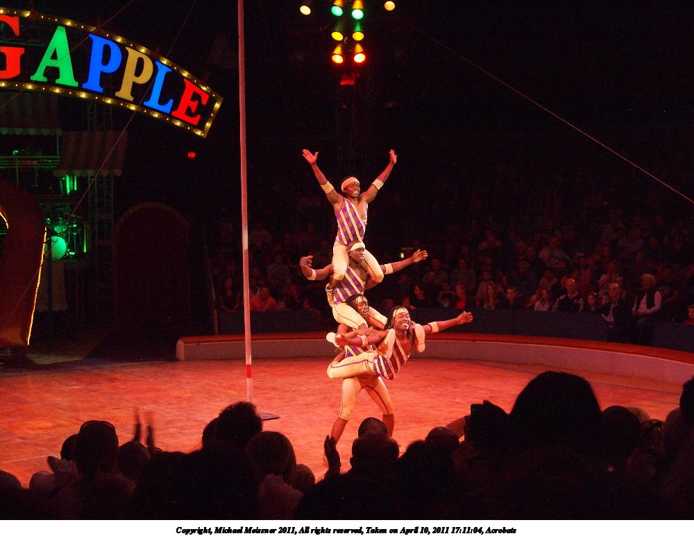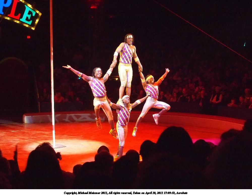 Picture #20: Acrobats #5 1000x773, 105,565 bytes (104K), (html file) Copyright, Michael Meissner 2011, All rights reserved Olympus E-P2 camera with Olympus-m43 14-42mm f/3.5-5.6 lens f/4.6, ISO 1250, 1/60 sec, 27.0mm, auto mode, vivid color, spot metering, auto + manual focus, IS1 (All Direction Shake IS) 35mm equivalent focal length 54.0mm Programs used: raw therapee Taken by Michael Meissner on April 10, 2011 17:11:04 Last modified on April 13, 2011 at 00:10 |