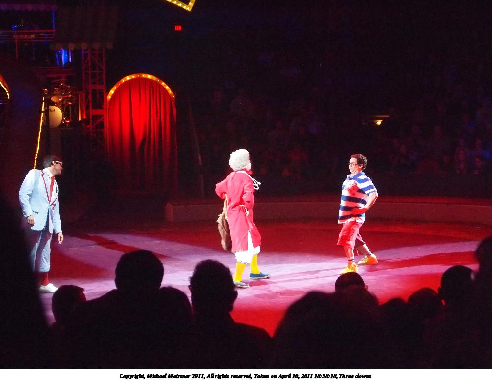 Picture #76: Three clowns 1000x773, 92,089 bytes (90K), (html file) Copyright, Michael Meissner 2011, All rights reserved Olympus E-P2 camera with Olympus-m43 14-42mm f/3.5-5.6 lens f/5.2, ISO 2500, 1/80 sec, 36.0mm, auto mode, vivid color, spot metering, IS1 (All Direction Shake IS), noise reduction auto 35mm equivalent focal length 72.0mm Programs used: noiseninja, raw therapee Taken by Michael Meissner on April 10, 2011 18:38:18 Last modified on April 13, 2011 at 07:54 |