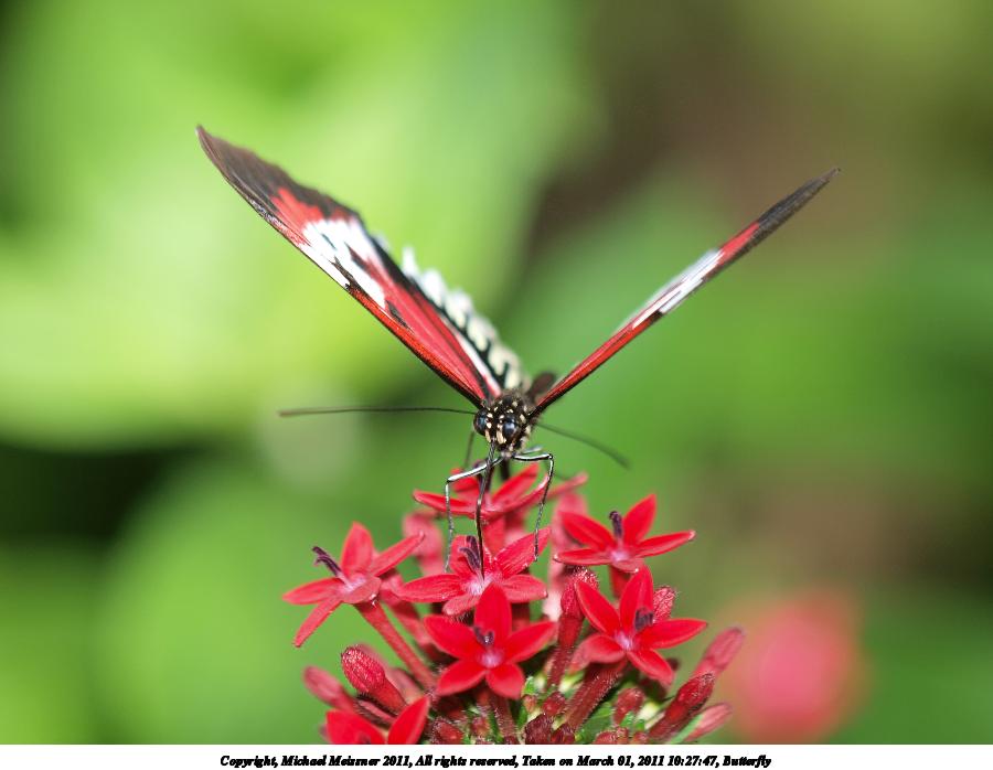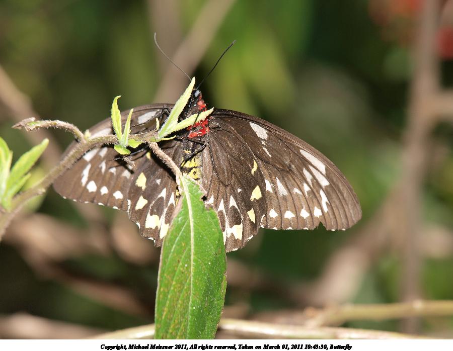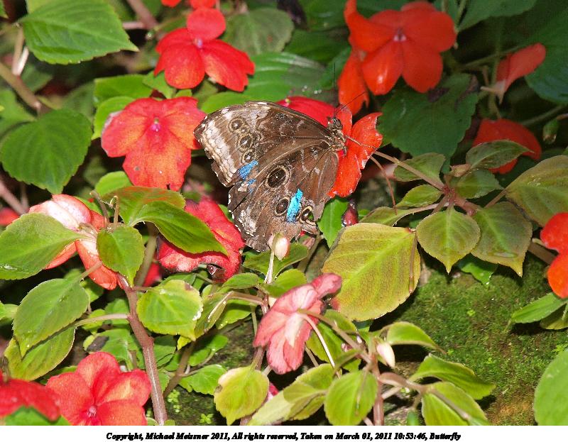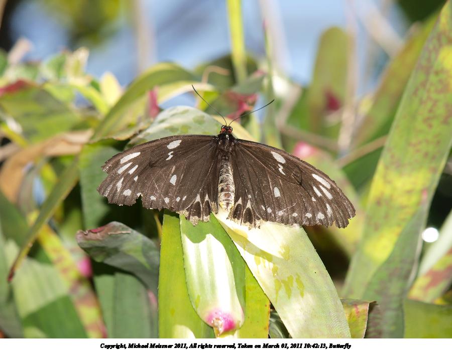 Picture #61: Butterfly #5 800x623, 62,901 bytes (62K), (html file) Copyright, Michael Meissner 2011, All rights reserved Olympus E-3 camera with Olympus 50-200mm f/2.8-3.5 lens f/5.6, ISO 100, FL-36 flash, 1/250 sec, 200.0mm, auto mode, natural color, auto gradation, SHQ, matrix metering, auto + manual focus, IS1 (All Direction Shake IS) 35mm equivalent focal length 401.0mm Extra equipment used: Olympus FL-36 flash Programs used: raw therapee Taken by Michael Meissner on March 01, 2011 10:22:18 Last modified on April 02, 2011 at 00:44 This picture is one of my favorites. |