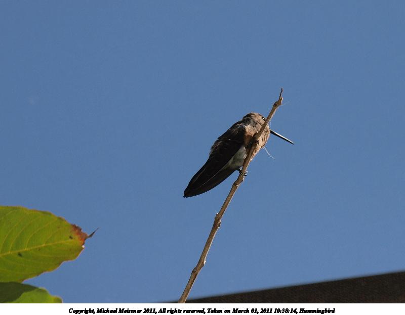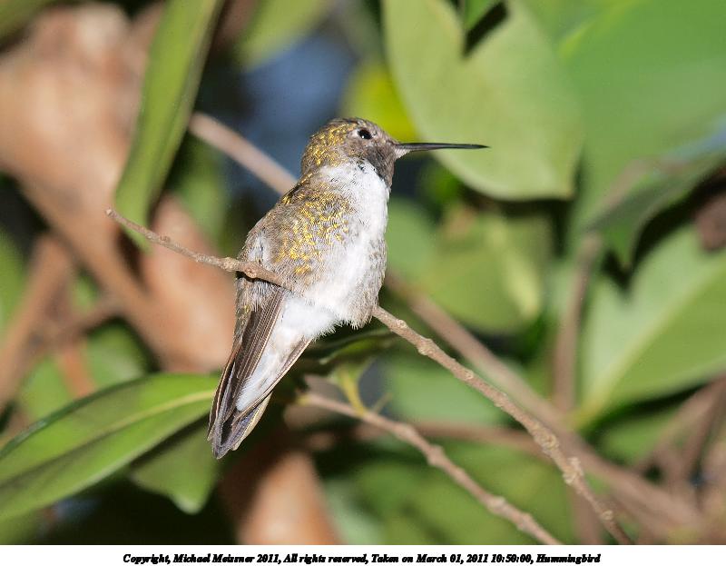 Picture #41: Hummingbird #3 800x623, 66,317 bytes (65K), (html file) Copyright, Michael Meissner 2011, All rights reserved Olympus E-3 camera with Olympus 50-200mm f/2.8-3.5 lens f/5.6, ISO 100, FL-36 flash, fp-ttl, 1/250 sec, 158.0mm, aperture priority, natural color, auto gradation, SHQ, matrix metering, manual focus, IS1 (All Direction Shake IS) 35mm equivalent focal length 317.0mm Extra equipment used: Olympus FL-36 flash Programs used: raw therapee Taken by Michael Meissner on March 01, 2011 10:50:00 Last modified on April 02, 2011 at 00:51 This picture is one of my favorites. |