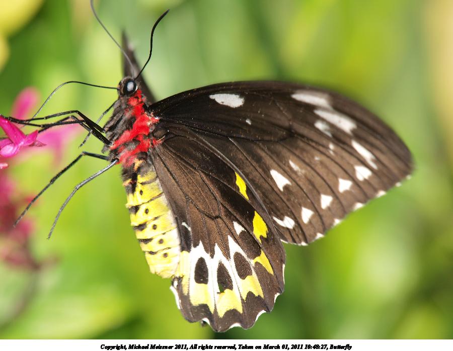 Picture #60: Butterfly #6 800x623, 152,247 bytes (149K), (html file) Copyright, Michael Meissner 2011, All rights reserved Olympus E-3 camera with Olympus 50-200mm f/2.8-3.5 lens f/8.0, ISO 100, FL-36 flash, 1/250 sec, 169.0mm, auto mode, natural color, auto gradation, SHQ, matrix metering, auto + manual focus, IS1 (All Direction Shake IS) 35mm equivalent focal length 339.0mm Extra equipment used: Olympus FL-36 flash Programs used: raw therapee Taken by Michael Meissner on March 01, 2011 10:24:37 Last modified on April 02, 2011 at 00:45 |
