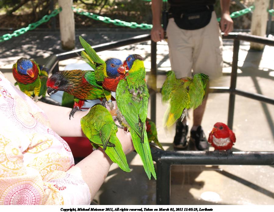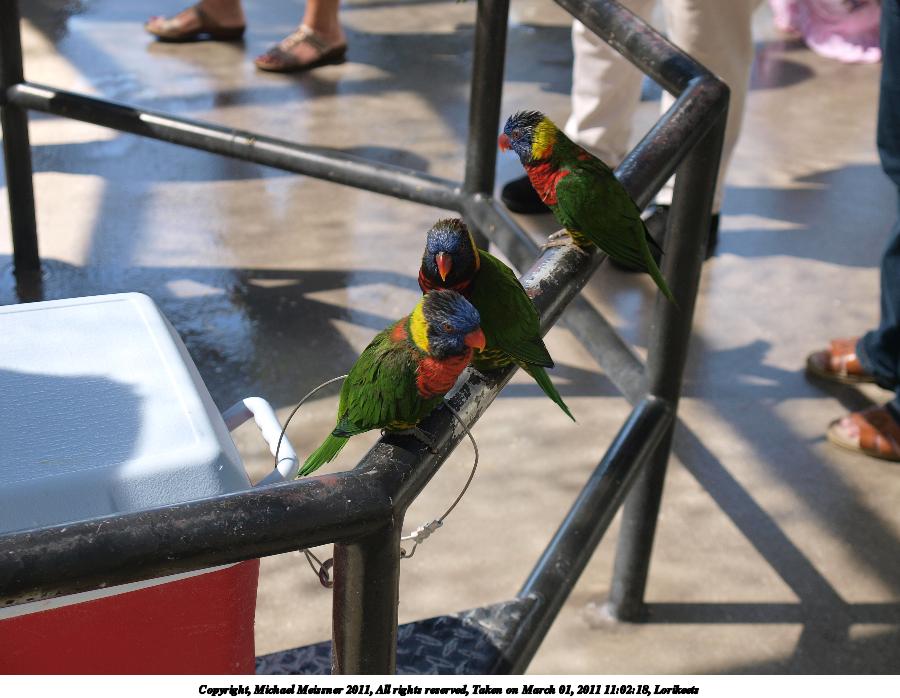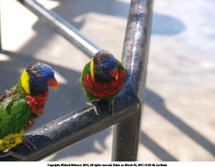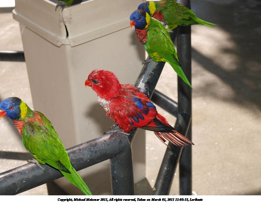 Picture #27: Lorikeets #5 900x698, 126,923 bytes (124K), (html file) Copyright, Michael Meissner 2011, All rights reserved Olympus E-3 camera with Olympus 14-54mm f/2.8-3.5 lens f/3.2, ISO 160, 1/60 sec, 31.0mm, auto mode, natural color, SHQ, matrix metering, auto + manual focus, IS1 (All Direction Shake IS) 35mm equivalent focal length 62.0mm Programs used: raw therapee Taken by Michael Meissner on March 01, 2011 11:03:30 Last modified on April 02, 2011 at 11:08 |