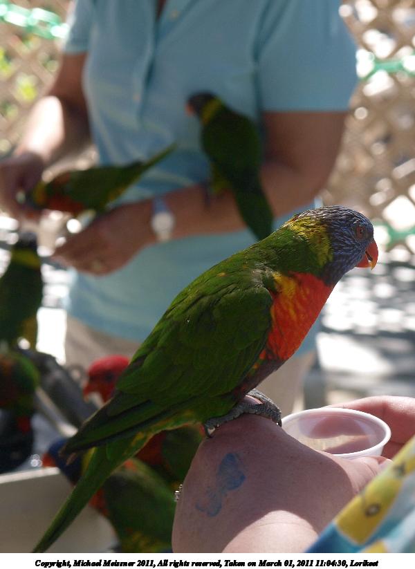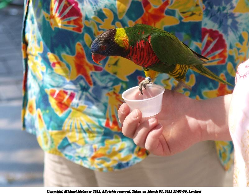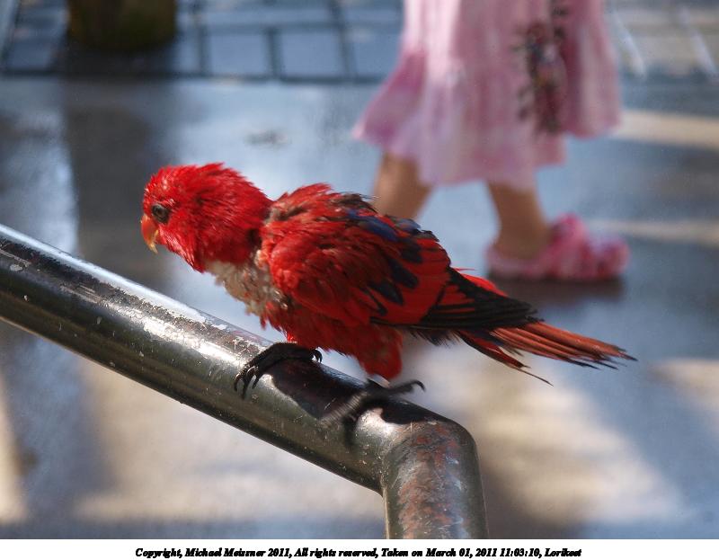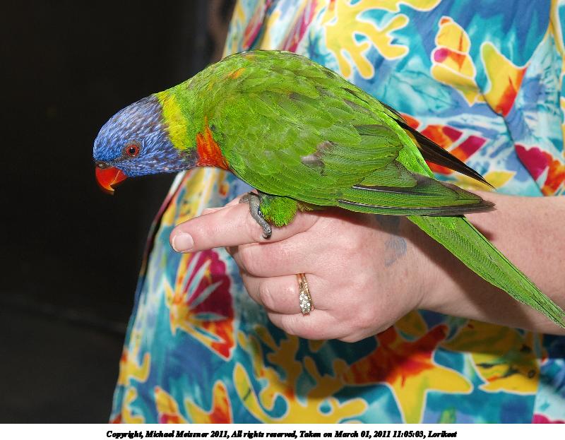 Picture #31: Lorikeet #3 800x623, 65,922 bytes (65K), (html file) Copyright, Michael Meissner 2011, All rights reserved Olympus E-3 camera with Olympus 14-54mm f/2.8-3.5 lens f/3.5, ISO 125, 1/100 sec, 54.0mm, auto mode, natural color, SHQ, matrix metering, auto + manual focus, IS1 (All Direction Shake IS) 35mm equivalent focal length 108.0mm Programs used: raw therapee Taken by Michael Meissner on March 01, 2011 11:03:10 Last modified on April 02, 2011 at 11:05 |