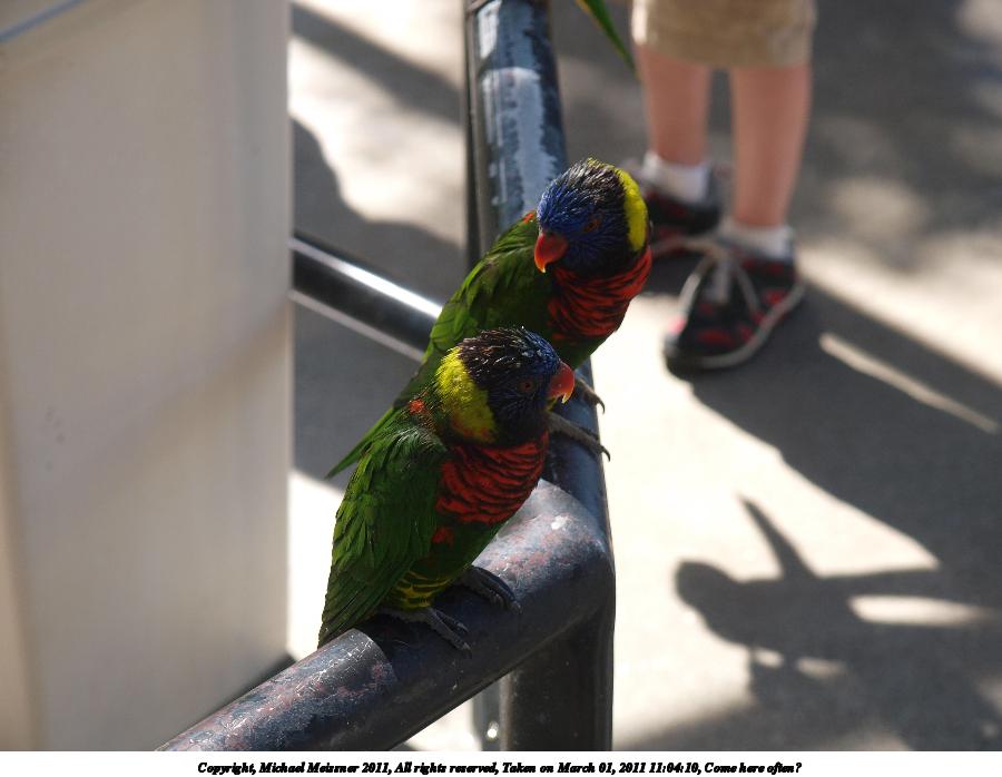 Picture #19: Lorikeets #9 900x698, 118,256 bytes (116K), (html file) Copyright, Michael Meissner 2011, All rights reserved Olympus E-3 camera with Olympus 14-54mm f/2.8-3.5 lens f/5.6, ISO 100, FL-36 flash, 1/60 sec, 28.0mm, aperture priority, natural color, SHQ, matrix metering, auto + manual focus, IS1 (All Direction Shake IS) 35mm equivalent focal length 56.0mm Programs used: raw therapee Taken by Michael Meissner on March 01, 2011 11:05:29 Last modified on April 02, 2011 at 11:15 |