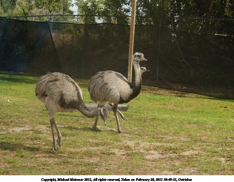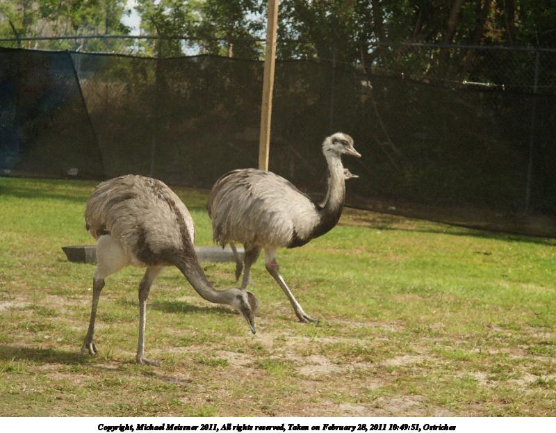 Picture #127: Ostriches #3 900x698, 102,618 bytes (101K), (html file) Copyright, Michael Meissner 2011, All rights reserved Olympus E-3 camera with Olympus 50-200mm f/2.8-3.5 lens and Olympus EC-14 (1.4x) f/4.0, ISO 320, 1/200 sec, 102.0mm, auto mode, natural color, auto gradation, SHQ, matrix metering, IS1 (All Direction Shake IS) 35mm equivalent focal length 204.0mm, EC-14 Programs used: raw therapee Taken by Michael Meissner on February 28, 2011 11:00:12 Last modified on April 04, 2011 at 00:23 |