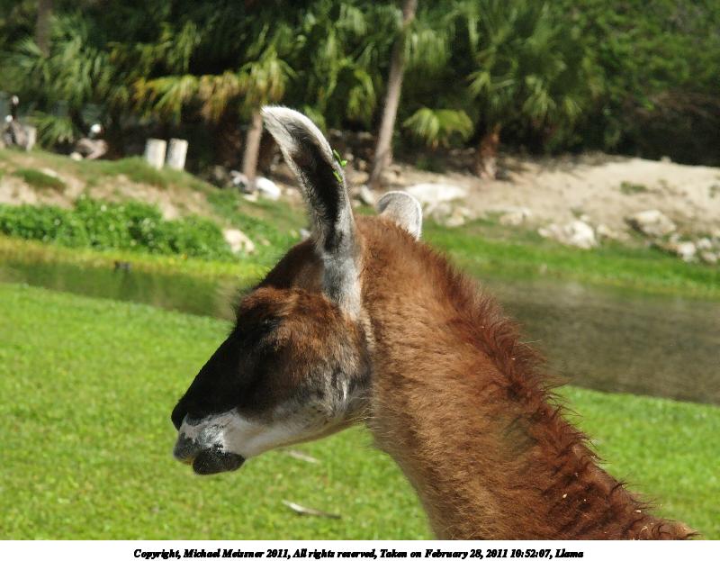 Picture #140: Llama #3 900x698, 114,740 bytes (113K), (html file) Copyright, Michael Meissner 2011, All rights reserved Olympus E-3 camera with Olympus 50-200mm f/2.8-3.5 lens and Olympus EC-14 (1.4x) f/4.0, ISO 160, 1/200 sec, 97.0mm, auto mode, natural color, auto gradation, SHQ, matrix metering, IS1 (All Direction Shake IS) 35mm equivalent focal length 194.0mm, EC-14 Programs used: raw therapee Taken by Michael Meissner on February 28, 2011 10:52:04 Last modified on April 04, 2011 at 00:13 |