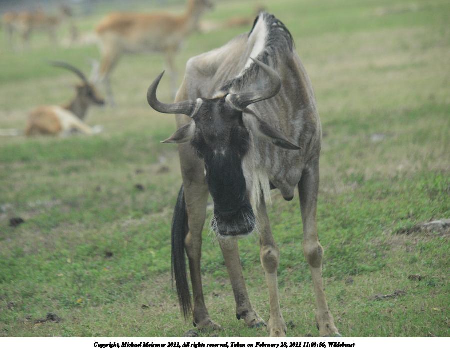 Picture #90: Wildebeast #4 900x698, 115,038 bytes (113K), (html file) Copyright, Michael Meissner 2011, All rights reserved Olympus E-3 camera with Olympus 50-200mm f/2.8-3.5 lens and Olympus EC-14 (1.4x) f/4.5, ISO 100, 1/320 sec, 107.0mm, auto mode, natural color, auto gradation, SHQ, matrix metering, auto + manual focus, IS1 (All Direction Shake IS) 35mm equivalent focal length 214.0mm, EC-14 Programs used: raw therapee Taken by Michael Meissner on February 28, 2011 11:47:58 Last modified on April 05, 2011 at 22:09 |