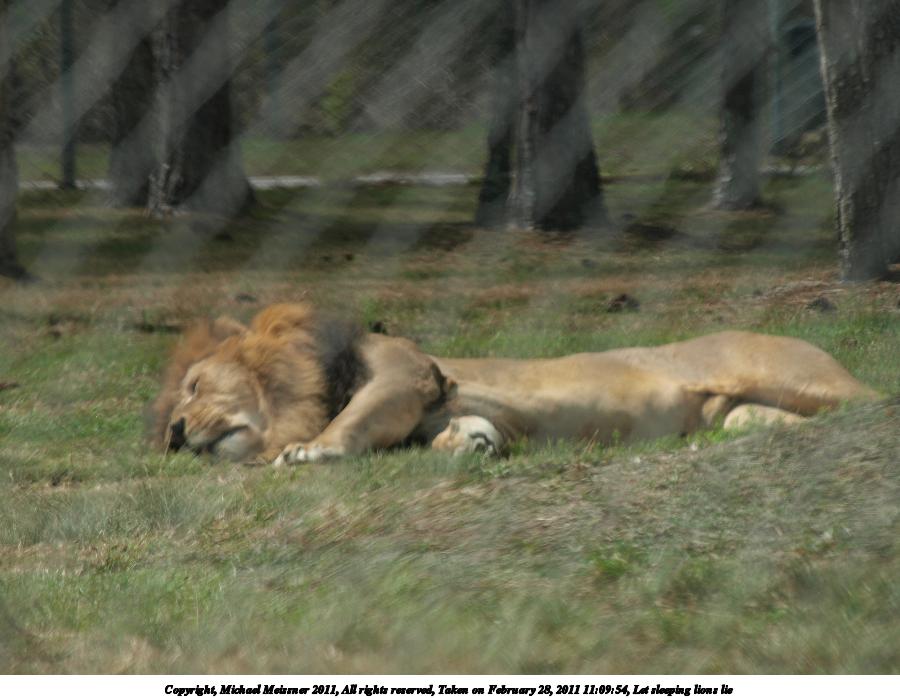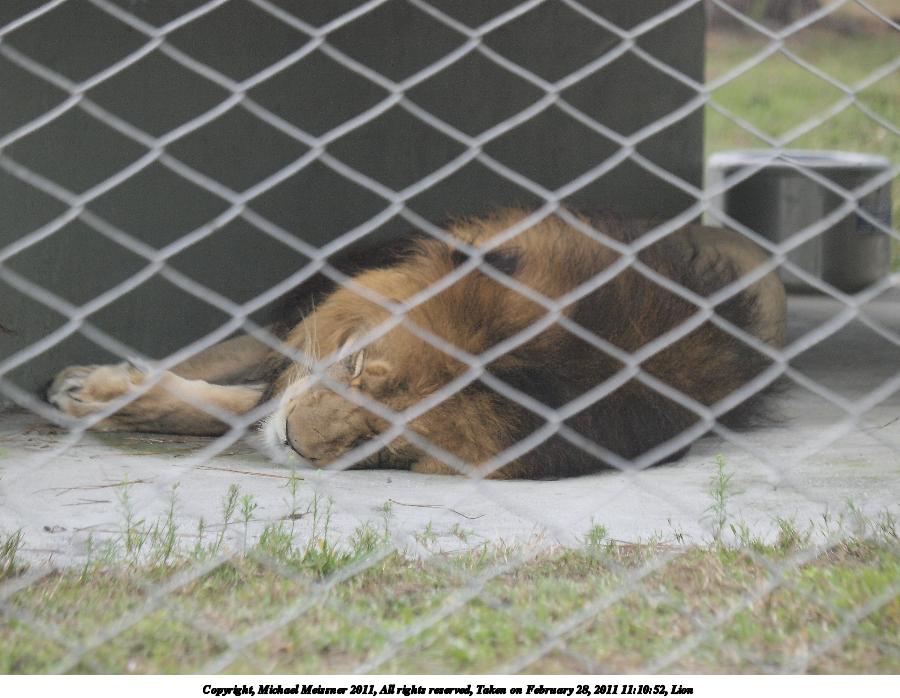 Picture #115: Let sleeping lions lie 900x698, 84,680 bytes (83K), (html file) Copyright, Michael Meissner 2011, All rights reserved Olympus E-3 camera with Olympus 50-200mm f/2.8-3.5 lens and Olympus EC-14 (1.4x) f/5.6, ISO 100, 1/320 sec, 283.0mm, auto mode, natural color, auto gradation, SHQ, matrix metering, IS1 (All Direction Shake IS) 35mm equivalent focal length 567.0mm, EC-14 Programs used: raw therapee Taken by Michael Meissner on February 28, 2011 11:09:54 Last modified on April 04, 2011 at 22:54 |