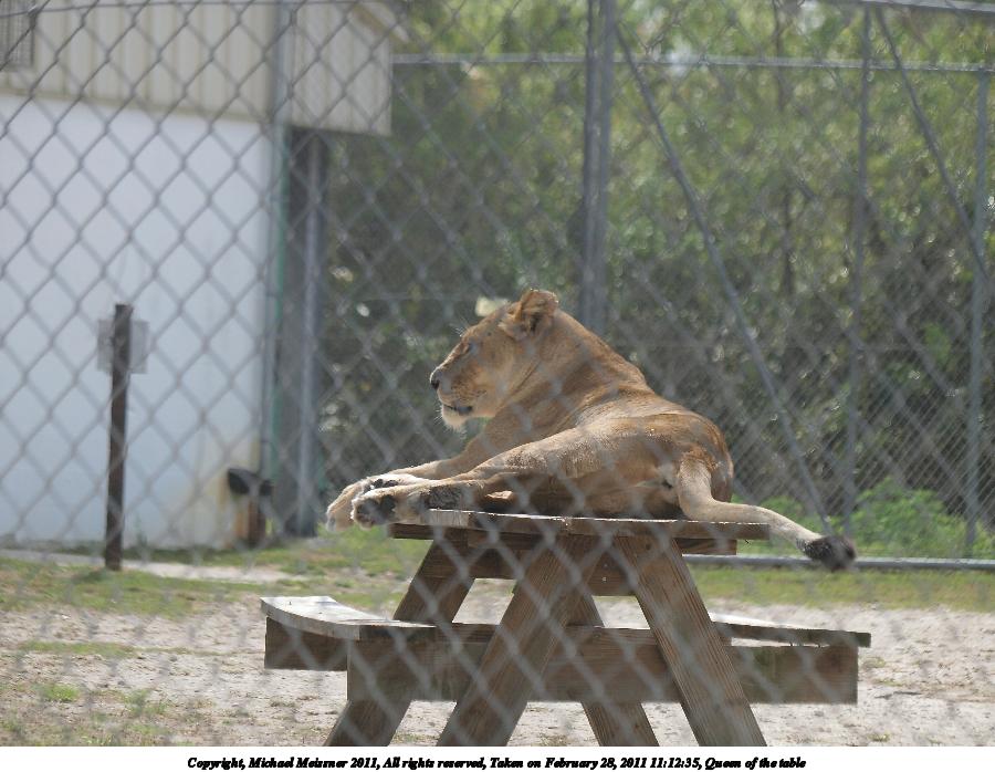 Picture #113: Queen of the table 900x698, 101,547 bytes (100K), (html file) Copyright, Michael Meissner 2011, All rights reserved Olympus E-3 camera with Olympus 50-200mm f/2.8-3.5 lens and Olympus EC-14 (1.4x) f/4.0, ISO 250, 1/250 sec, 112.0mm, auto mode, natural color, auto gradation, SHQ, matrix metering, manual focus, IS1 (All Direction Shake IS) 35mm equivalent focal length 224.0mm, EC-14 Programs used: default crop, gimp Taken by Michael Meissner on February 28, 2011 11:12:35 Last modified on April 04, 2011 at 22:57 |