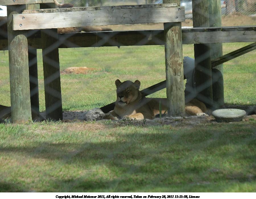 Picture #111: Lioness #2 900x698, 112,814 bytes (111K), (html file) Copyright, Michael Meissner 2011, All rights reserved Olympus E-3 camera with Olympus 50-200mm f/2.8-3.5 lens and Olympus EC-14 (1.4x) f/4.0, ISO 200, 1/250 sec, 112.0mm, auto mode, natural color, auto gradation, SHQ, matrix metering, auto + manual focus, IS1 (All Direction Shake IS) 35mm equivalent focal length 224.0mm, EC-14 Programs used: default crop, gimp Taken by Michael Meissner on February 28, 2011 11:13:58 Last modified on April 04, 2011 at 23:01 |
