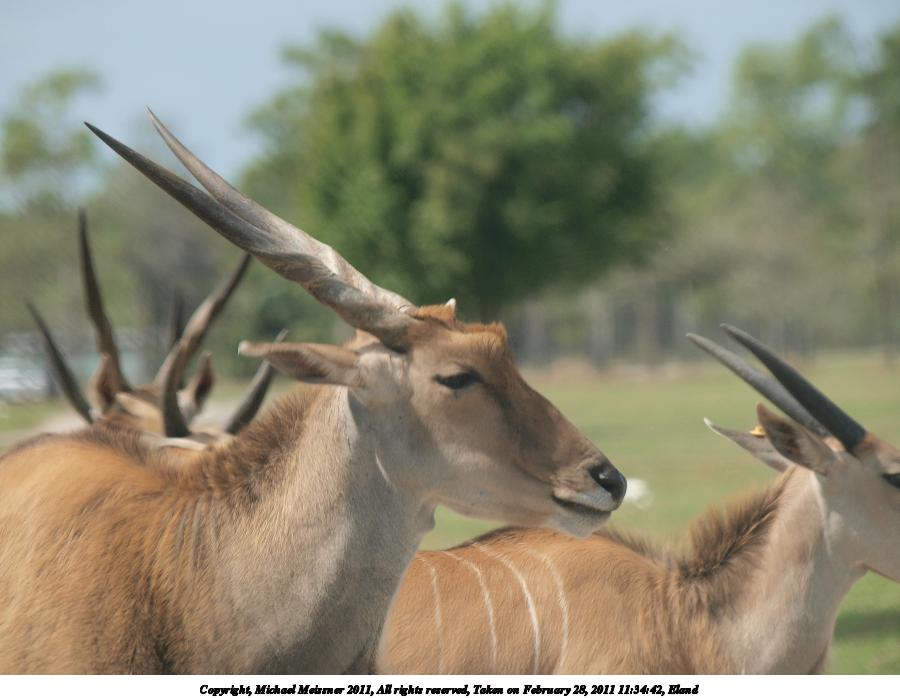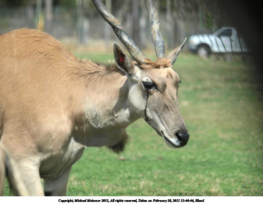 Picture #100: Eland #3 900x698, 74,275 bytes (73K), (html file) Copyright, Michael Meissner 2011, All rights reserved Olympus E-3 camera with Olympus 50-200mm f/2.8-3.5 lens and Olympus EC-14 (1.4x) f/5.0, ISO 100, 1/320 sec, 208.0mm, auto mode, natural color, auto gradation, SHQ, matrix metering, auto + manual focus, IS1 (All Direction Shake IS) 35mm equivalent focal length 417.0mm, EC-14 Programs used: raw therapee Taken by Michael Meissner on February 28, 2011 11:34:42 Last modified on April 04, 2011 at 23:17 |