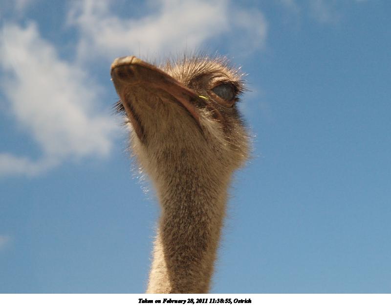 Picture #145: Ostrich #2 800x623, 141,495 bytes (139K), (html file) Copyright, Michael Meissner 2011, All rights reserved Olympus E-1 camera with Olympus 14-54mm f/2.8-3.5 lens f/8.0, ISO 800, 1/640 sec, 40.0mm, auto mode, SHQ, matrix metering, +2 contrast, +2 sharpening, continous focus 35mm equivalent focal length 80.0mm Programs used: raw therapee Taken by Michael Meissner on February 28, 2011 10:50:52 Last modified on April 04, 2011 at 00:06 |
