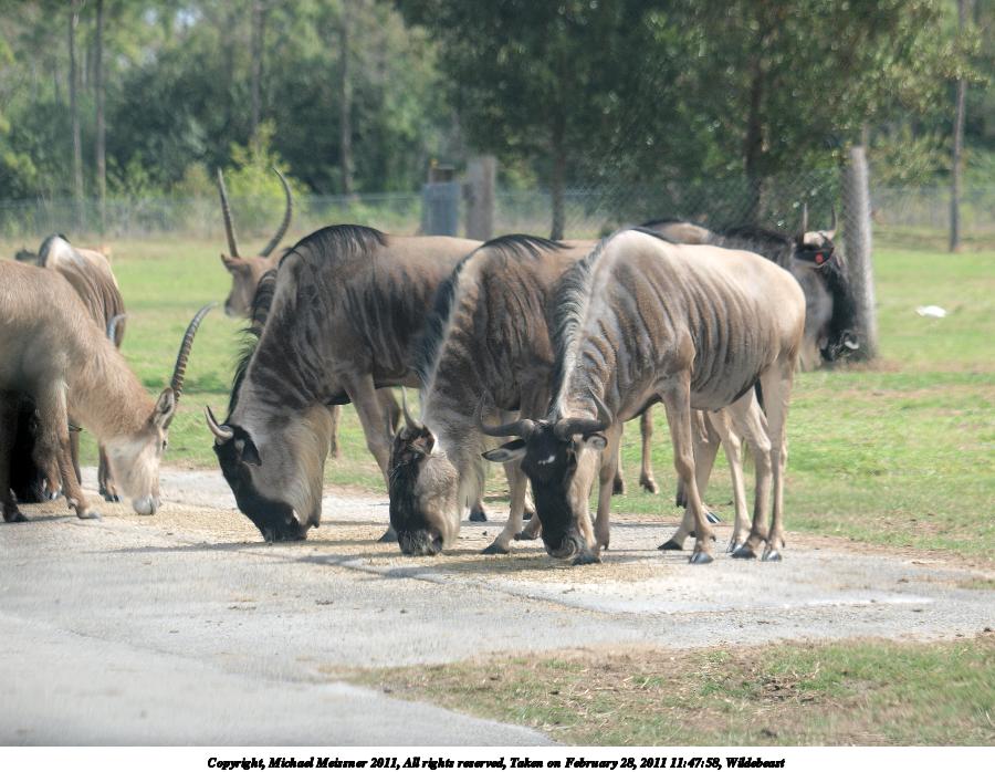 Picture #72: Wildebeast #5 900x698, 117,600 bytes (115K), (html file) Copyright, Michael Meissner 2011, All rights reserved Olympus E-3 camera with Olympus 50-200mm f/2.8-3.5 lens and Olympus EC-14 (1.4x) f/4.7, ISO 250, 1/250 sec, 239.0mm, auto mode, natural color, auto gradation, SHQ, matrix metering, manual focus, IS1 (All Direction Shake IS) 35mm equivalent focal length 479.0mm, EC-14 Programs used: raw therapee Taken by Michael Meissner on February 28, 2011 12:02:25 Last modified on April 05, 2011 at 22:15 This picture is one of my favorites. |