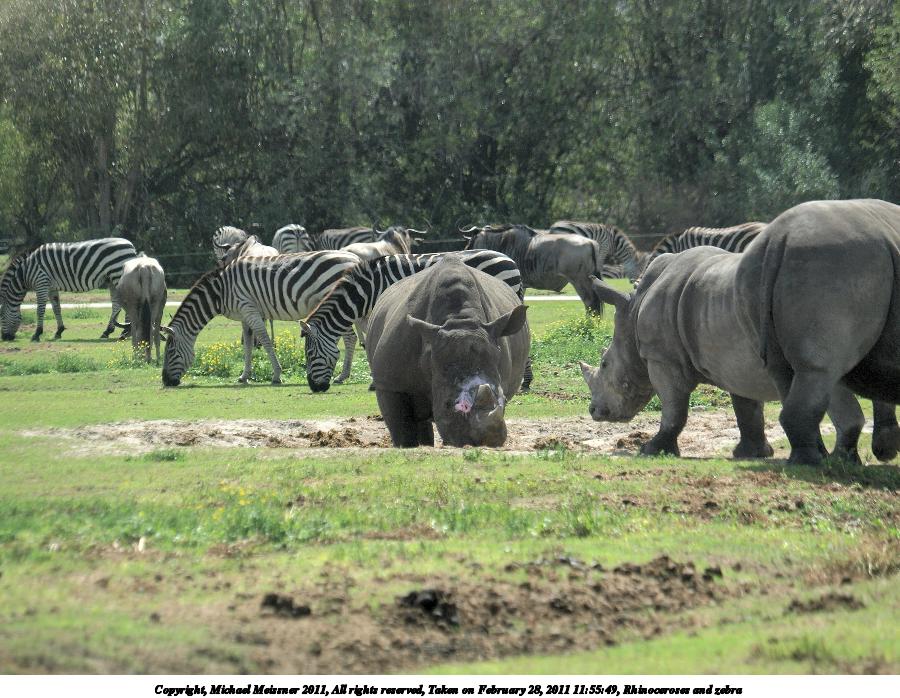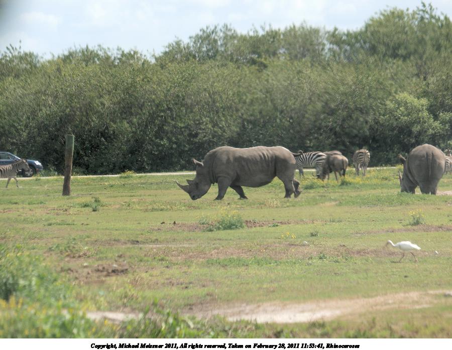 Picture #87: Rhinoceroses and zebra 900x698, 141,684 bytes (139K), (html file) Copyright, Michael Meissner 2011, All rights reserved Olympus E-3 camera with Olympus 50-200mm f/2.8-3.5 lens and Olympus EC-14 (1.4x) f/4.0, ISO 200, 1/250 sec, 117.0mm, auto mode, natural color, auto gradation, SHQ, matrix metering, auto + manual focus, IS1 (All Direction Shake IS) 35mm equivalent focal length 234.0mm, EC-14 Programs used: raw therapee Taken by Michael Meissner on February 28, 2011 11:55:49 Last modified on April 05, 2011 at 22:10 |