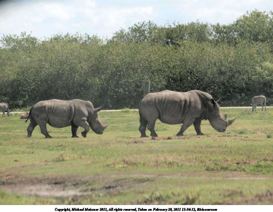 Picture #88: Rhinoceroses #2 900x698, 125,722 bytes (123K), (html file) Copyright, Michael Meissner 2011, All rights reserved Olympus E-3 camera with Olympus 50-200mm f/2.8-3.5 lens and Olympus EC-14 (1.4x) f/5.0, ISO 100, 1/400 sec, 117.0mm, auto mode, natural color, auto gradation, SHQ, matrix metering, auto + manual focus, IS1 (All Direction Shake IS) 35mm equivalent focal length 234.0mm, EC-14 Programs used: raw therapee Taken by Michael Meissner on February 28, 2011 11:54:12 Last modified on April 05, 2011 at 22:10 |