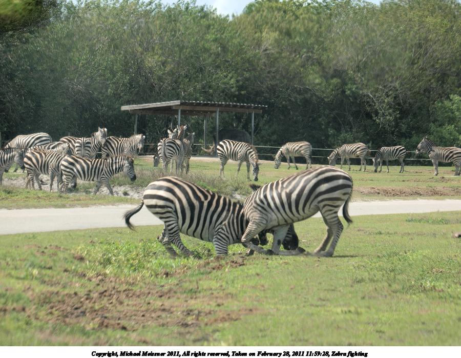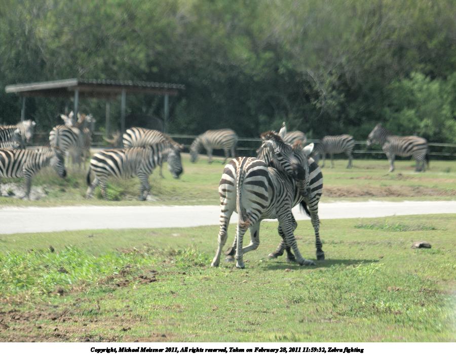 Picture #76: Zebra fighting #3 900x698, 118,579 bytes (116K), (html file) Copyright, Michael Meissner 2011, All rights reserved Olympus E-3 camera with Olympus 50-200mm f/2.8-3.5 lens and Olympus EC-14 (1.4x) f/4.5, ISO 100, 1/400 sec, 130.0mm, auto mode, natural color, auto gradation, SHQ, matrix metering, auto + manual focus, IS1 (All Direction Shake IS) 35mm equivalent focal length 260.0mm, EC-14 Programs used: raw therapee Taken by Michael Meissner on February 28, 2011 11:59:32 Last modified on April 05, 2011 at 22:13 |