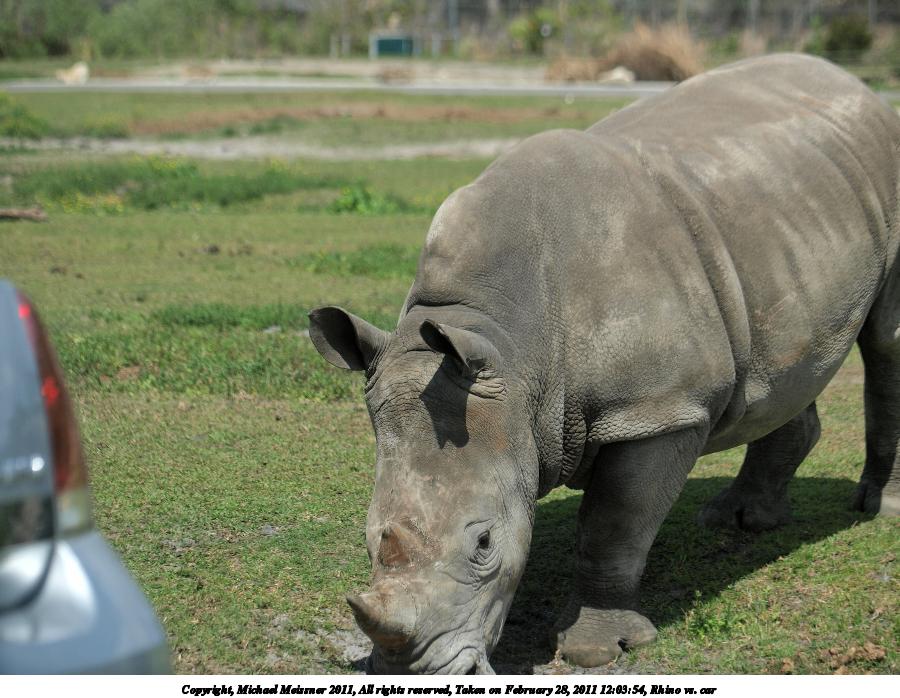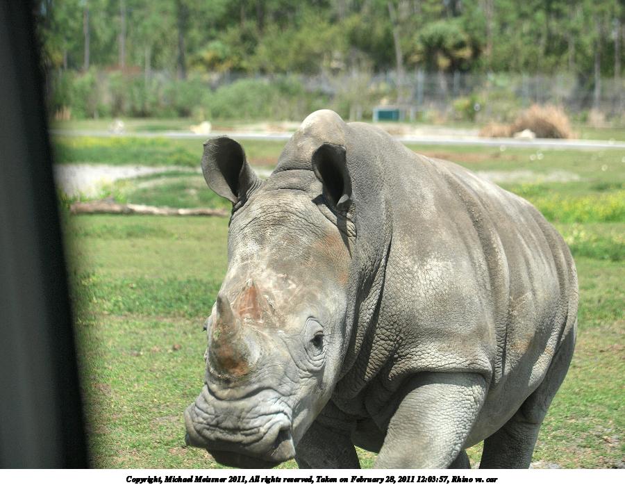 Picture #70: Rhino vs. car #2 900x698, 123,707 bytes (121K), (html file) Copyright, Michael Meissner 2011, All rights reserved Olympus E-3 camera with Olympus 50-200mm f/2.8-3.5 lens and Olympus EC-14 (1.4x) f/4.0, ISO 100, 1/200 sec, 70.0mm, auto mode, natural color, auto gradation, SHQ, matrix metering, manual focus, IS1 (All Direction Shake IS) 35mm equivalent focal length 140.0mm, EC-14 Programs used: raw therapee Taken by Michael Meissner on February 28, 2011 12:03:57 Last modified on April 05, 2011 at 22:15 |