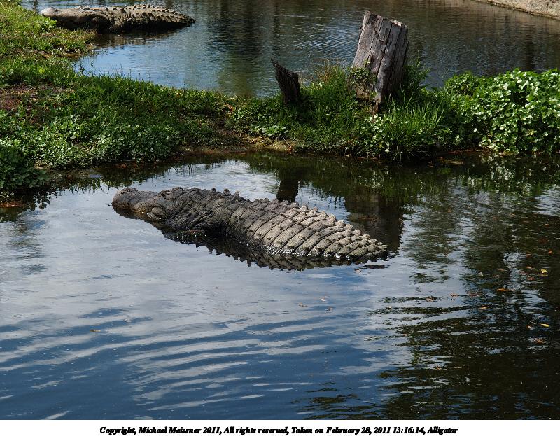 Picture #43: Alligator #3 800x623, 143,053 bytes (140K), (html file) Copyright, Michael Meissner 2011, All rights reserved Olympus E-1 camera with Olympus 14-54mm f/2.8-3.5 lens f/5.6, ISO 100, 1/320 sec, 54.0mm, auto mode, SHQ, matrix metering, +2 contrast, +2 sharpening, continous focus 35mm equivalent focal length 108.0mm Programs used: raw therapee Taken by Michael Meissner on February 28, 2011 13:16:14 Last modified on April 05, 2011 at 22:37 |