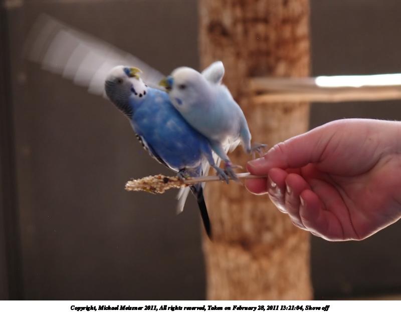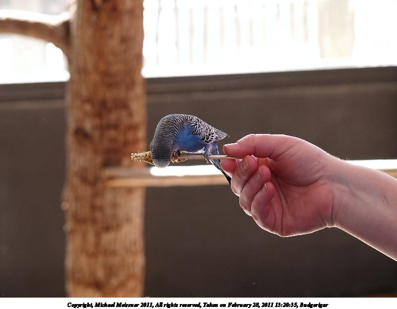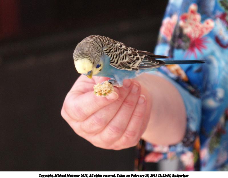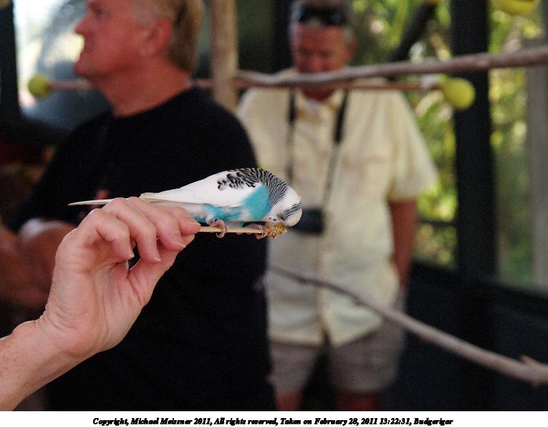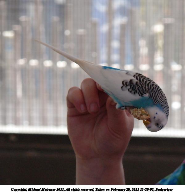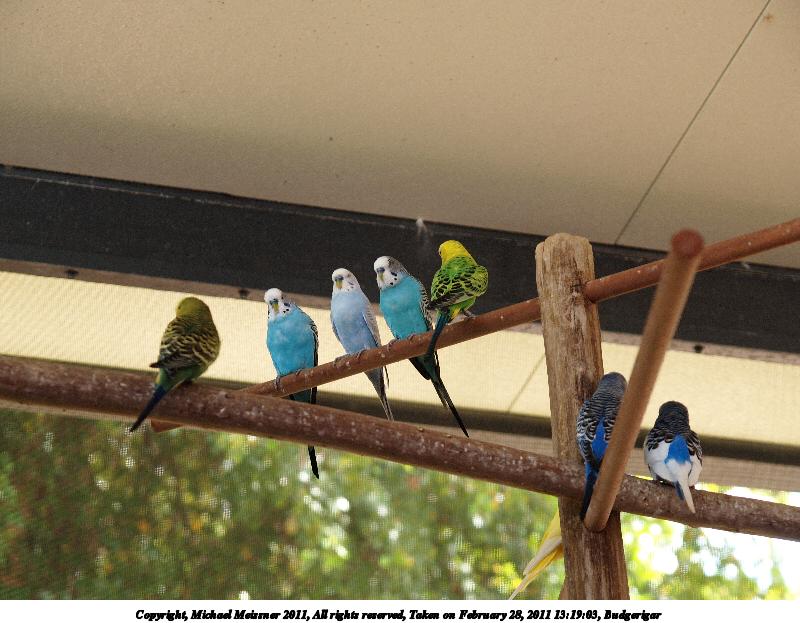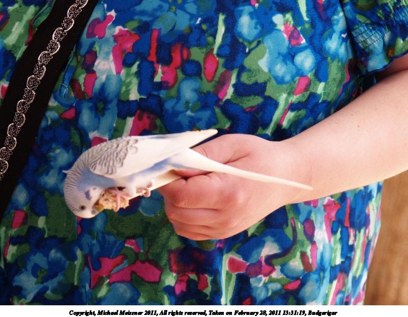 Picture #33: Budgerigar #6 800x623, 49,458 bytes (49K), (html file) Copyright, Michael Meissner 2011, All rights reserved Olympus E-1 camera with Olympus 14-54mm f/2.8-3.5 lens f/3.5, ISO 400, 1/125 sec, 54.0mm, auto mode, SHQ, matrix metering, +2 contrast, +2 sharpening, auto + manual focus 35mm equivalent focal length 108.0mm Programs used: gimp, neatimage Taken by Michael Meissner on February 28, 2011 13:21:49 Last modified on April 06, 2011 at 08:01 This picture is one of my favorites. |