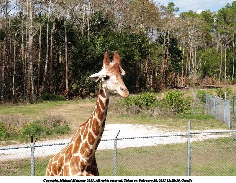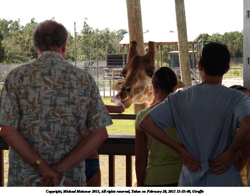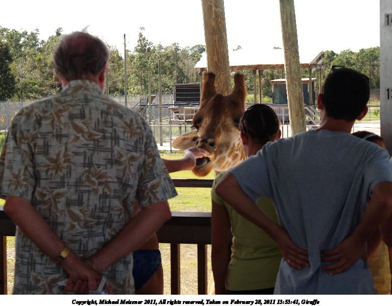 Picture #4: Giraffe #14 800x623, 173,447 bytes (170K), (html file) Copyright, Michael Meissner 2011, All rights reserved Olympus E-1 camera with Olympus 14-54mm f/2.8-3.5 lens f/6.3, ISO 100, 1/250 sec, 29.0mm, auto mode, SHQ, matrix metering, +2 contrast, +2 sharpening, auto + manual focus 35mm equivalent focal length 58.0mm Programs used: raw therapee Taken by Michael Meissner on February 28, 2011 13:59:58 Last modified on April 06, 2011 at 08:41 |