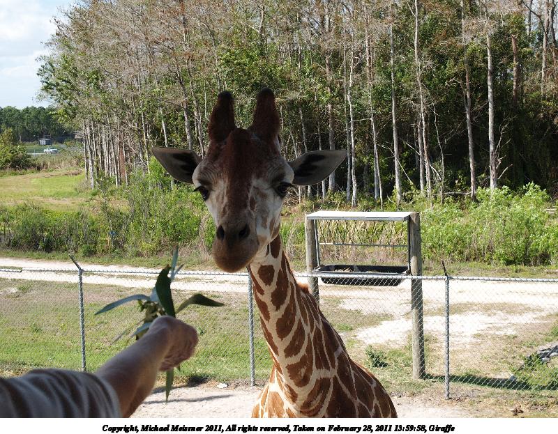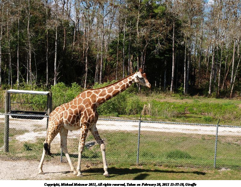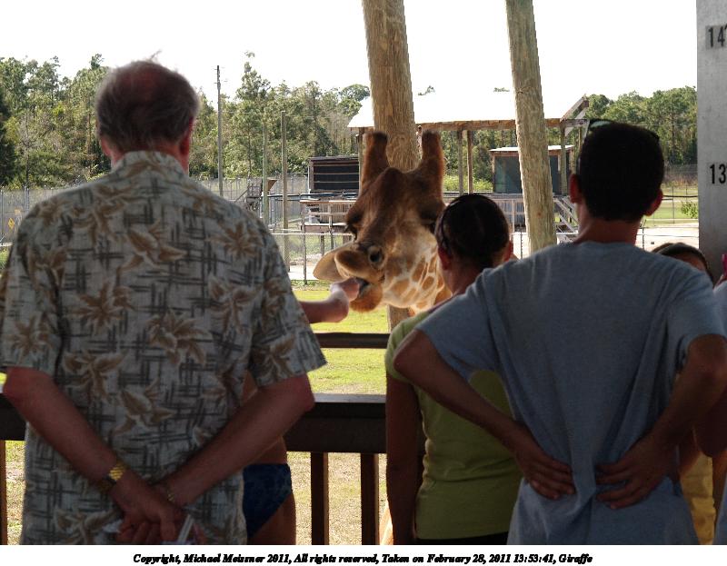 Picture #8: Giraffe #11 800x623, 152,302 bytes (149K), (html file) Copyright, Michael Meissner 2011, All rights reserved Olympus E-1 camera with Olympus 14-54mm f/2.8-3.5 lens f/5.6, ISO 100, 1/250 sec, 32.0mm, auto mode, SHQ, matrix metering, +2 contrast, +2 sharpening, auto + manual focus 35mm equivalent focal length 64.0mm Programs used: raw therapee Taken by Michael Meissner on February 28, 2011 13:57:35 Last modified on April 06, 2011 at 08:39 |