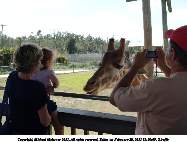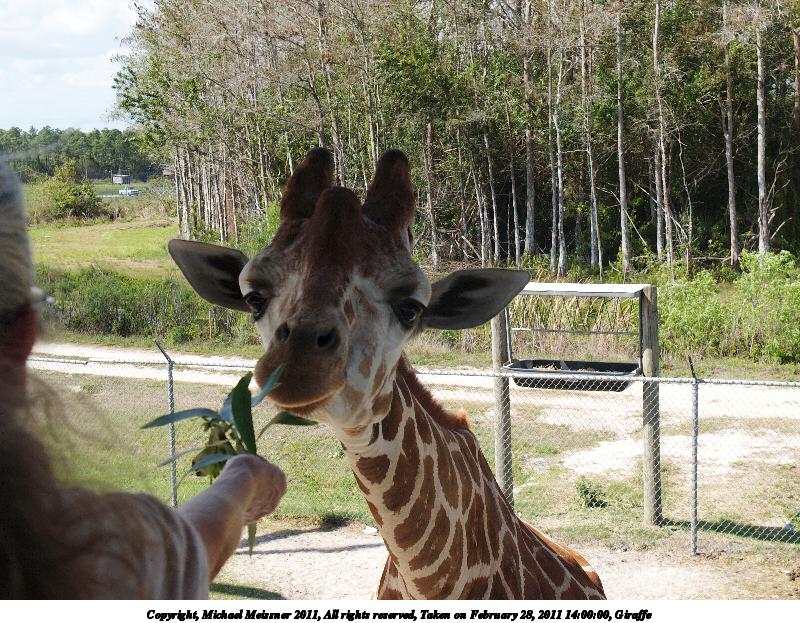 Picture #2: Giraffe #16 800x623, 151,726 bytes (149K), (html file) Copyright, Michael Meissner 2011, All rights reserved Olympus E-1 camera with Olympus 14-54mm f/2.8-3.5 lens f/6.3, ISO 100, 1/250 sec, 29.0mm, auto mode, SHQ, matrix metering, +2 contrast, +2 sharpening, auto + manual focus 35mm equivalent focal length 58.0mm Programs used: raw therapee Taken by Michael Meissner on February 28, 2011 14:00:00 Last modified on April 06, 2011 at 08:44 This picture is one of my favorites. |