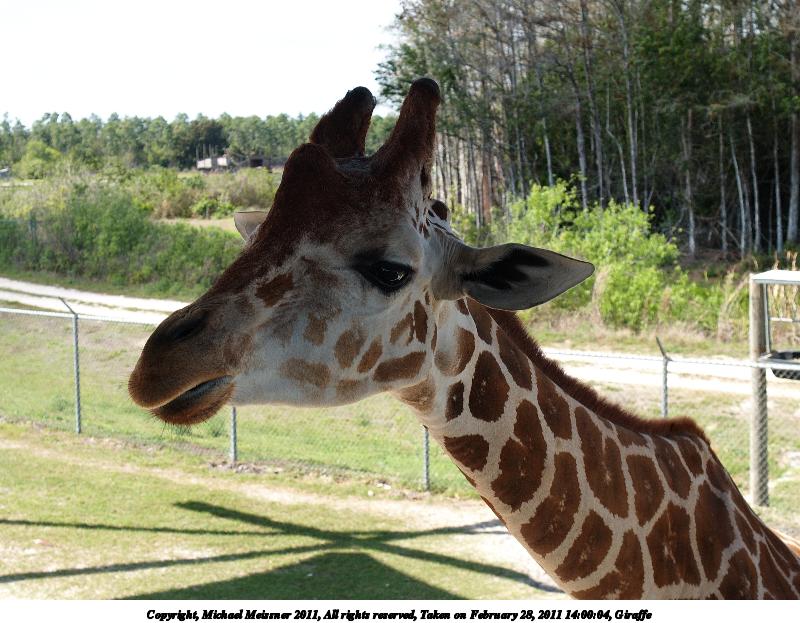 Picture #9: Giraffe #10 800x623, 195,642 bytes (192K), (html file) Copyright, Michael Meissner 2011, All rights reserved Olympus E-1 camera with Olympus 14-54mm f/2.8-3.5 lens f/7.1, ISO 100, 1/320 sec, 25.0mm, auto mode, SHQ, matrix metering, +2 contrast, +2 sharpening, auto + manual focus 35mm equivalent focal length 50.0mm Programs used: raw therapee Taken by Michael Meissner on February 28, 2011 13:57:18 Last modified on April 06, 2011 at 08:38 |