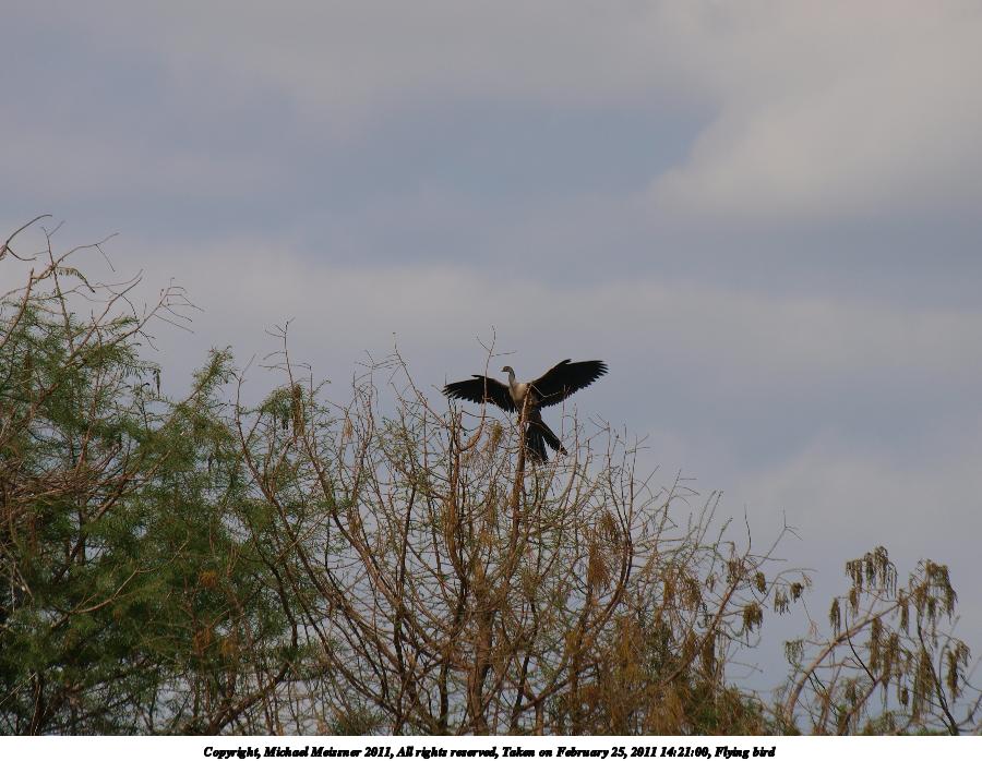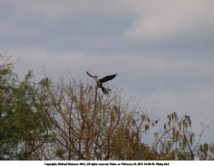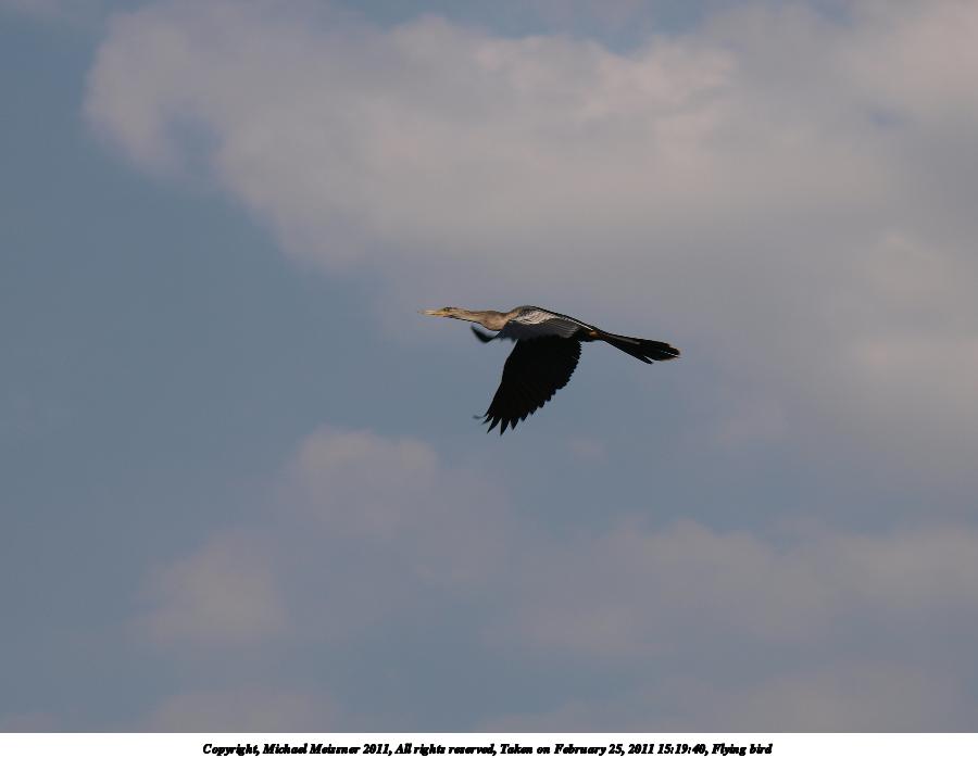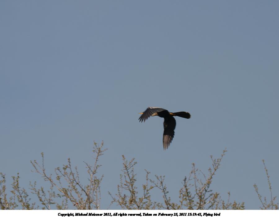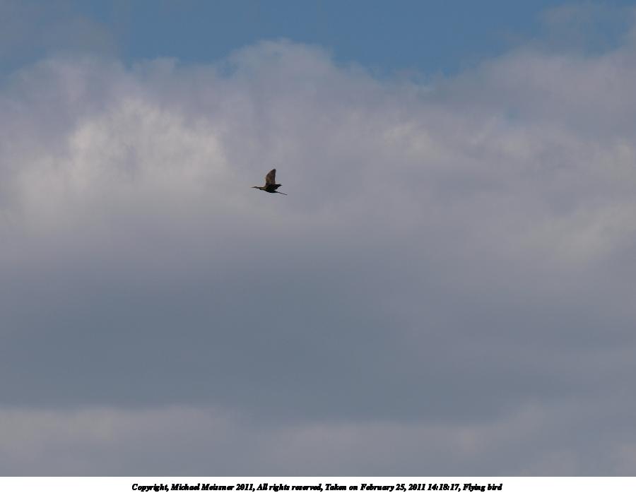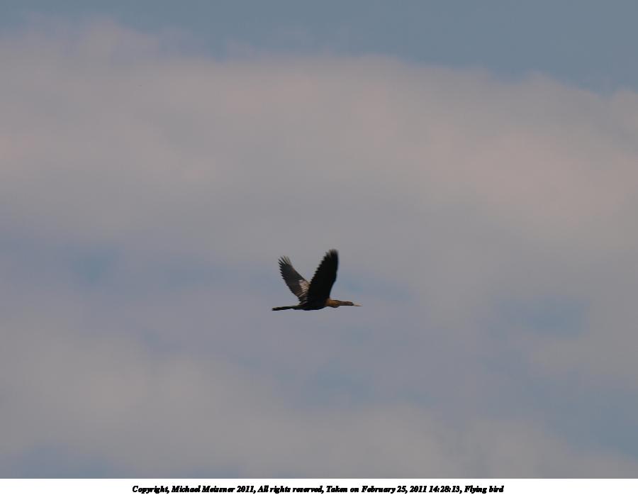 Picture #14: Flying bird #7 900x698, 45,006 bytes (44K), (html file) Copyright, Michael Meissner 2011, All rights reserved Olympus E-3 camera with Olympus 50-200mm f/2.8-3.5 lens and Olympus EC-14 (1.4x) f/8.0, ISO 100, 1/320 sec, 102.0mm, aperture priority, natural color, SHQ, matrix metering, auto + manual focus, IS1 (All Direction Shake IS) 35mm equivalent focal length 204.0mm, EC-14 Programs used: raw therapee Taken by Michael Meissner on February 25, 2011 15:19:41 Last modified on March 31, 2011 at 09:02 |