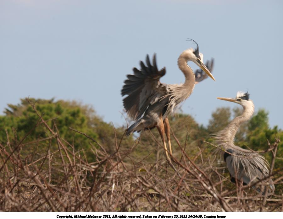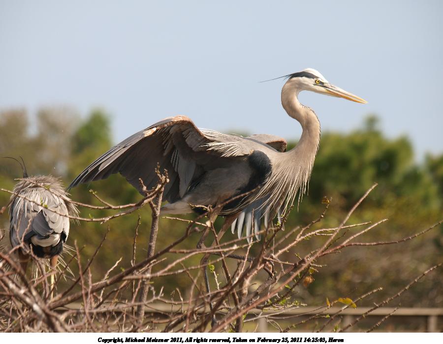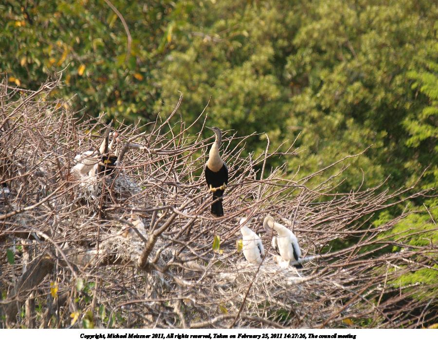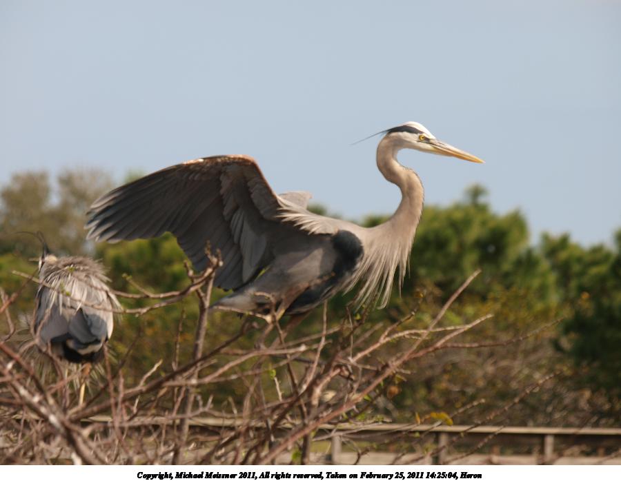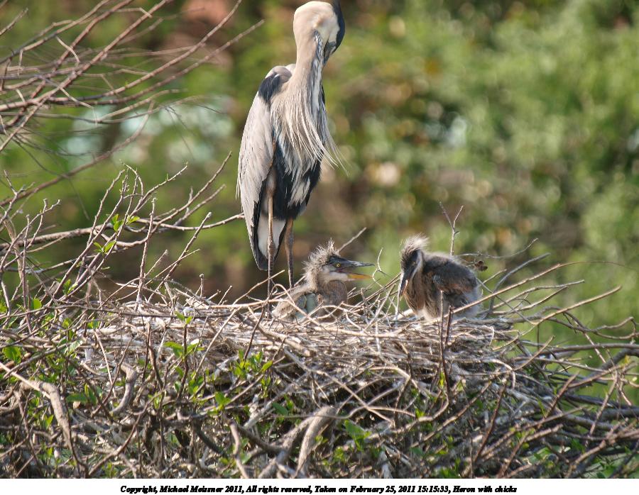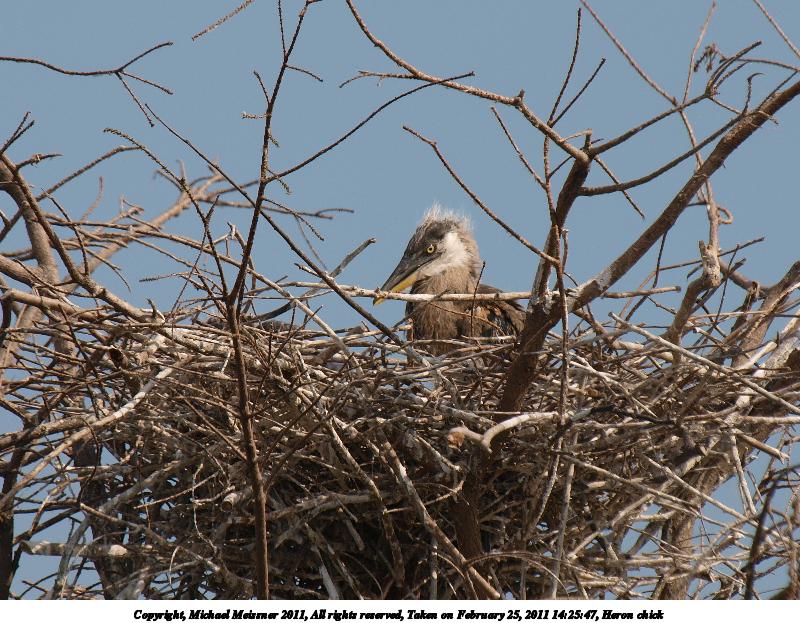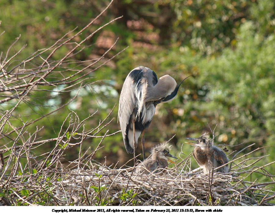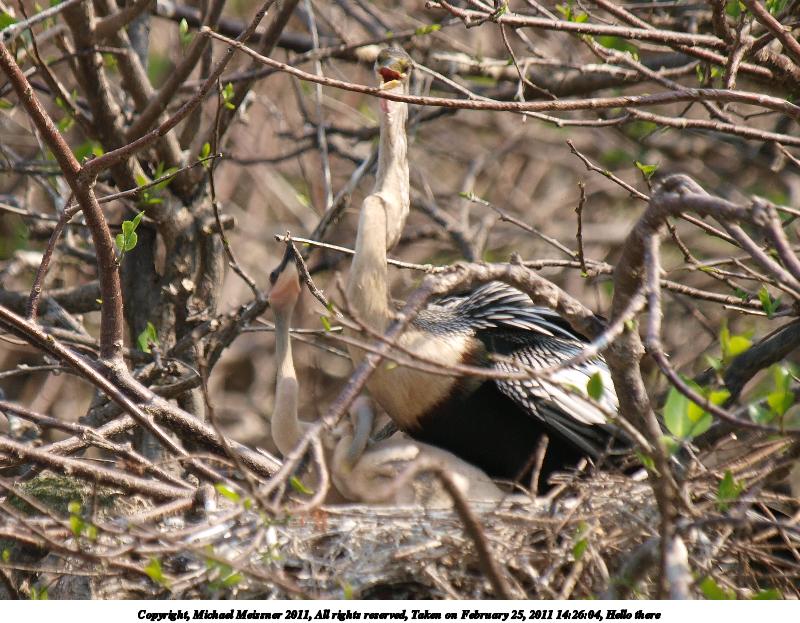 Picture #19: Heron with chicks #4 900x698, 172,220 bytes (169K), (html file) Copyright, Michael Meissner 2011, All rights reserved Olympus E-3 camera with Olympus 50-200mm f/2.8-3.5 lens and Olympus EC-14 (1.4x) f/11.0, ISO 800, 1/250 sec, 283.0mm, aperture priority, natural color, SHQ, matrix metering, auto + manual focus, IS1 (All Direction Shake IS) 35mm equivalent focal length 567.0mm, EC-14 Programs used: raw therapee Taken by Michael Meissner on February 25, 2011 15:16:05 Last modified on March 31, 2011 at 08:59 |