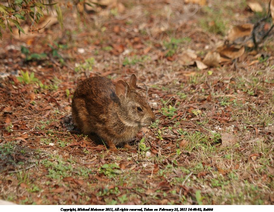 Picture #25: Rabbit #2 900x698, 131,012 bytes (128K), (html file) Copyright, Michael Meissner 2011, All rights reserved Olympus E-3 camera with Olympus 50-200mm f/2.8-3.5 lens and Olympus EC-14 (1.4x) f/4.9, ISO 1250, 1/250 sec, 283.0mm, auto mode, natural color, SHQ, matrix metering, manual focus, IS1 (All Direction Shake IS) 35mm equivalent focal length 567.0mm, EC-14 Programs used: raw therapee Taken by Michael Meissner on February 25, 2011 15:08:23 Last modified on March 31, 2011 at 08:56 |