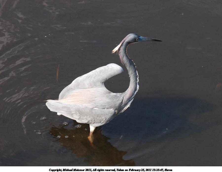 Picture #5: Heron #19 900x698, 62,418 bytes (61K), (html file) Copyright, Michael Meissner 2011, All rights reserved Olympus E-3 camera with Olympus 50-200mm f/2.8-3.5 lens and Olympus EC-14 (1.4x) f/8.0, ISO 800, 1/250 sec, 130.0mm, aperture priority, natural color, SHQ, matrix metering, manual focus, IS1 (All Direction Shake IS) 35mm equivalent focal length 260.0mm, EC-14 Taken by Michael Meissner on February 25, 2011 15:25:51 Last modified on March 31, 2011 at 09:09 |