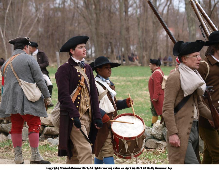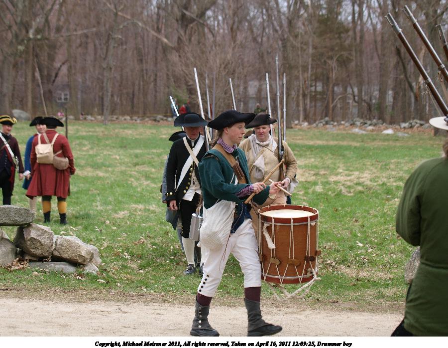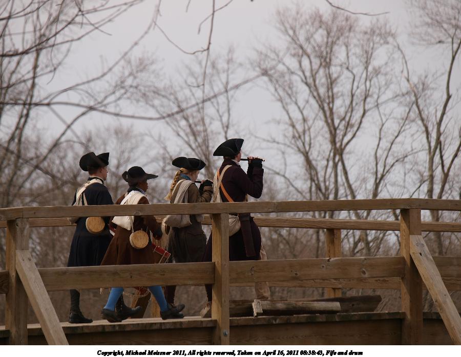 Picture #4: Fife and drum Thumb: 450x338, 45,563 bytes (45K) Small: 900x698, 101,530 bytes (100K), (html file) Copyright, Michael Meissner 2011, All rights reserved Olympus E-3 camera with Olympus 50-200mm f/2.8-3.5 lens f/4.5, ISO 100, 1/500 sec, 169.0mm, auto mode, natural color, SHQ, matrix metering, IS1 (All Direction Shake IS) 35mm equivalent focal length 339.0mm Programs used: raw therapee Taken by Michael Meissner on April 16, 2011 08:38:43 Last modified on April 20, 2011 at 19:32 |