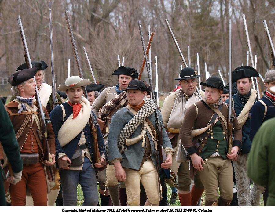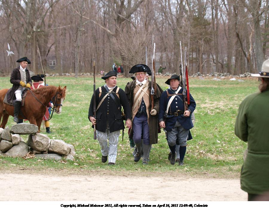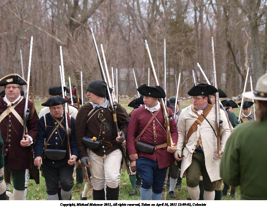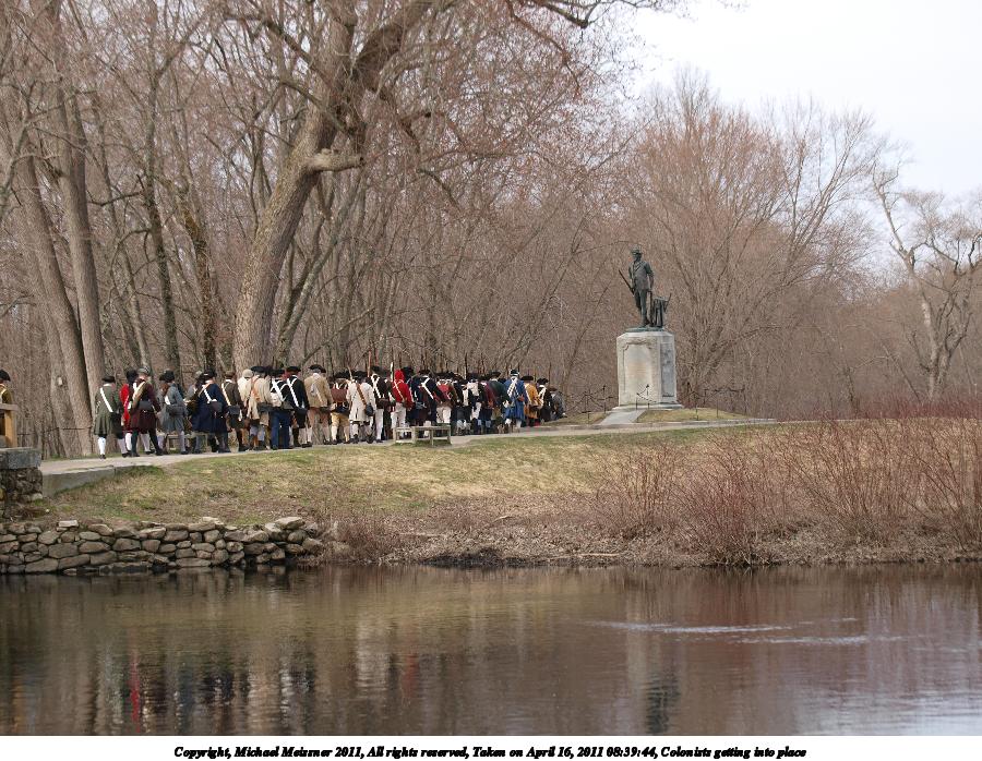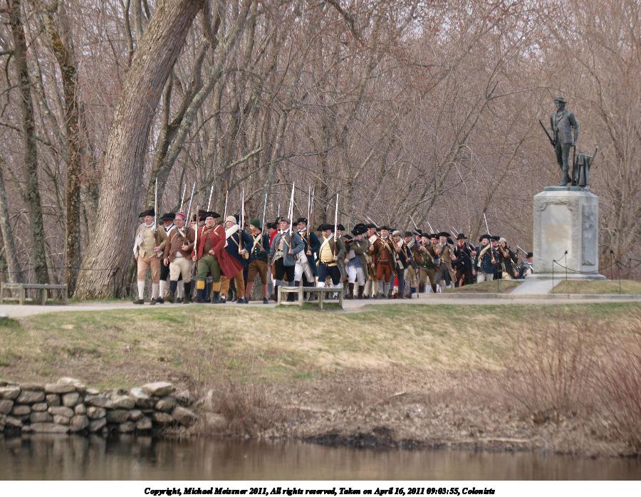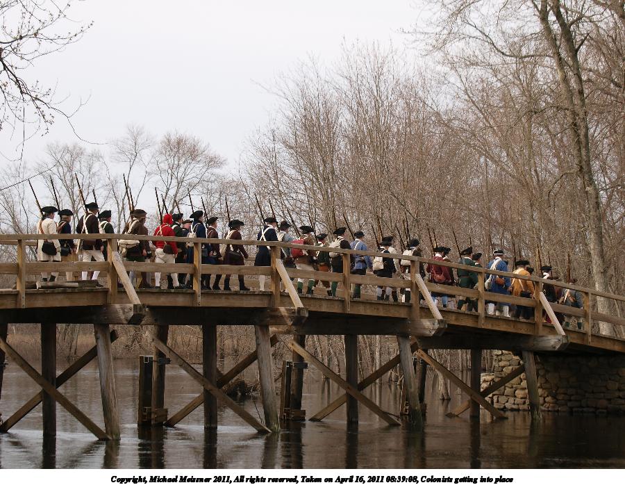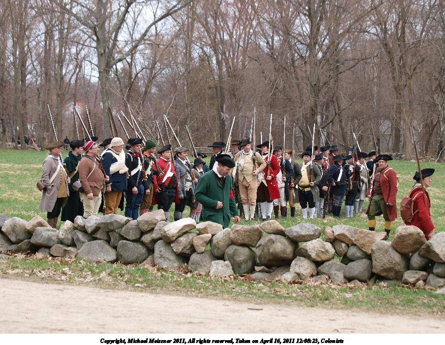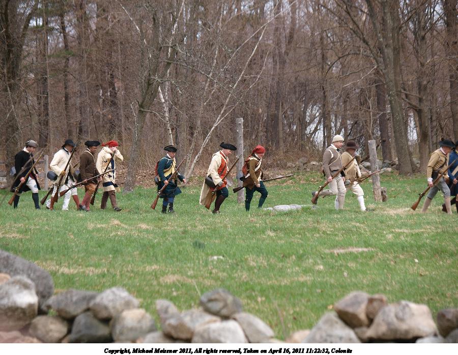 Picture #5: Colonists getting into place Thumb: 450x338, 54,172 bytes (53K) Small: 900x698, 165,351 bytes (162K), (html file) Copyright, Michael Meissner 2011, All rights reserved Olympus E-3 camera with Olympus 50-200mm f/2.8-3.5 lens f/4.5, ISO 100, 1/320 sec, 55.0mm, auto mode, natural color, SHQ, matrix metering, IS1 (All Direction Shake IS) 35mm equivalent focal length 110.0mm Programs used: raw therapee Taken by Michael Meissner on April 16, 2011 08:39:08 Last modified on April 20, 2011 at 19:32 |