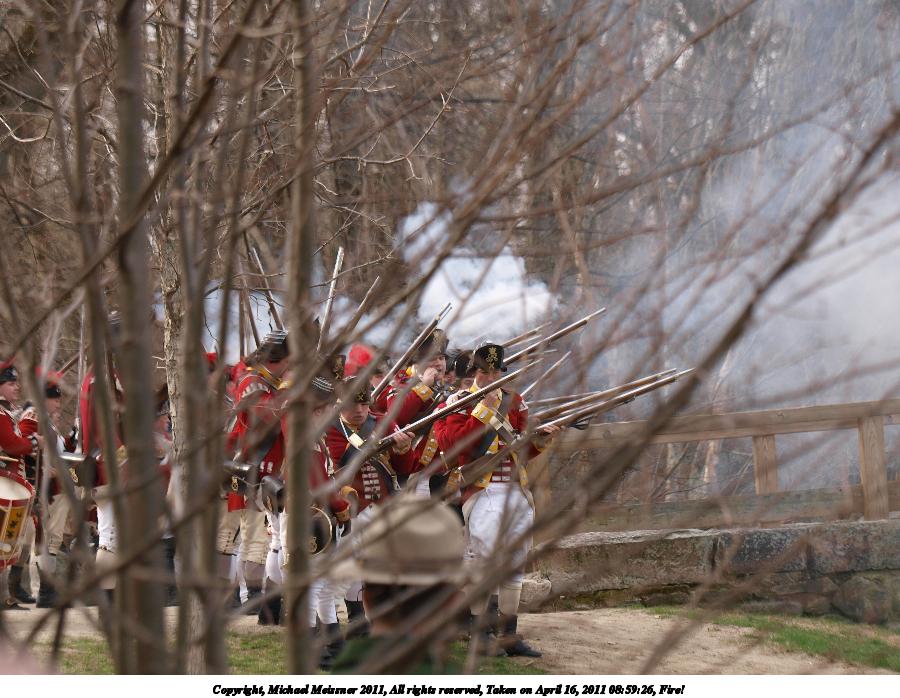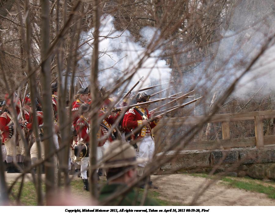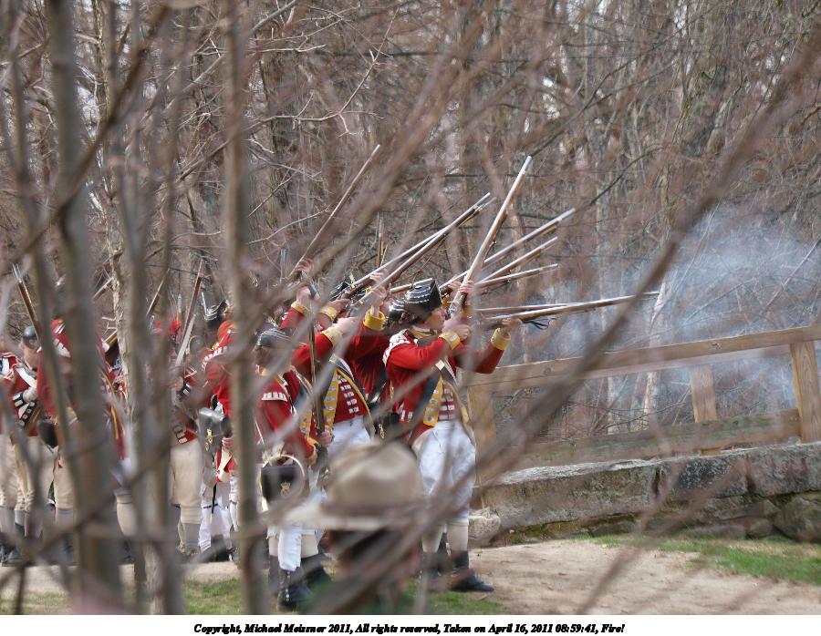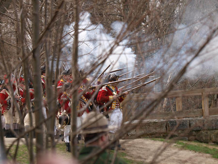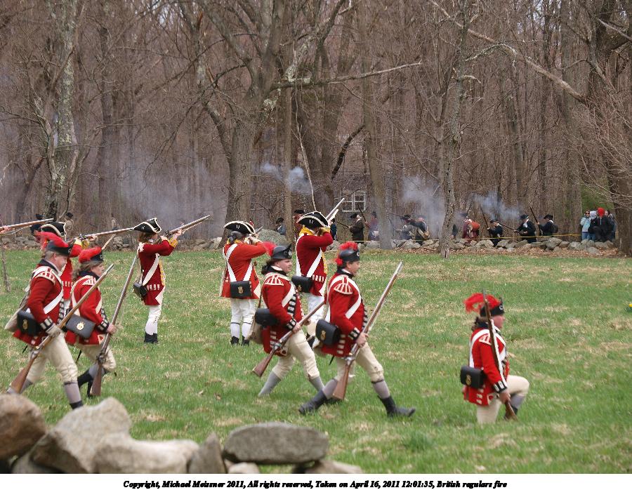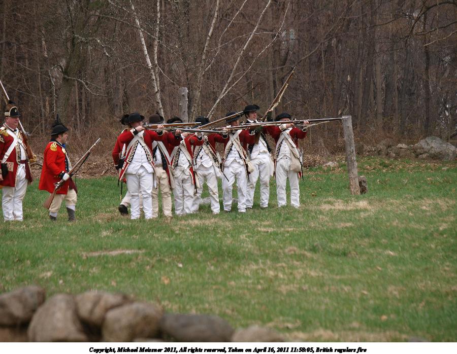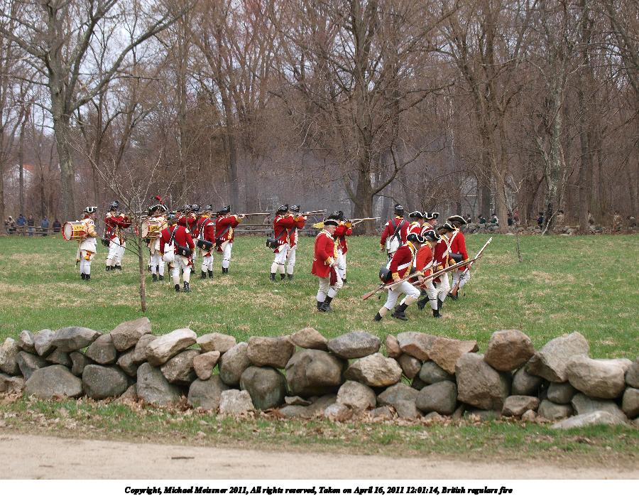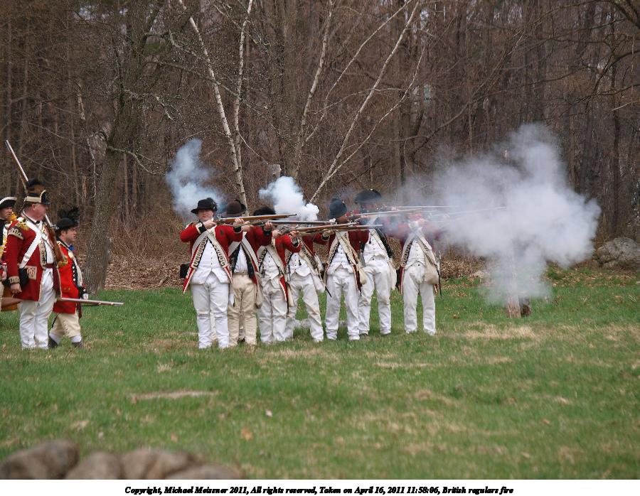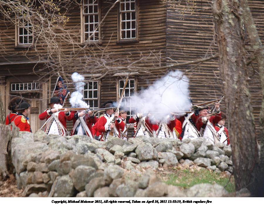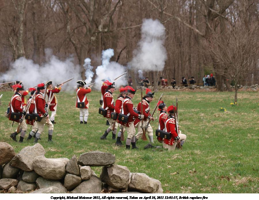Picture #55: British regulars fire #6 Thumb: 450x338, 59,877 bytes (59K) Small: 900x698, 155,707 bytes (153K), (html file) Copyright, Michael Meissner 2011, All rights reserved Olympus E-3 camera with Olympus 50-200mm f/2.8-3.5 lens f/4.5, ISO 100, 1/320 sec, 50.0mm, auto mode, natural color, SHQ, matrix metering, IS1 (All Direction Shake IS) 35mm equivalent focal length 100.0mm Programs used: raw therapee Taken by Michael Meissner on April 16, 2011 11:59:37 Last modified on April 23, 2011 at 09:32 This picture is one of my favorites. |