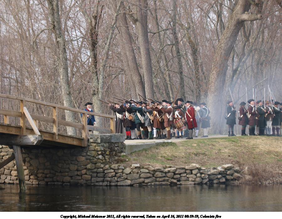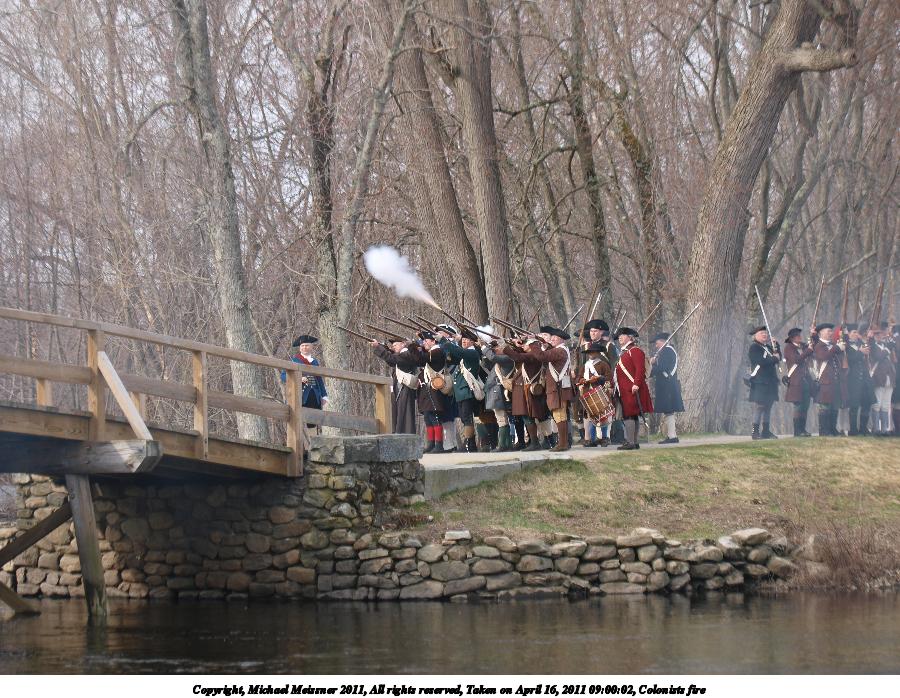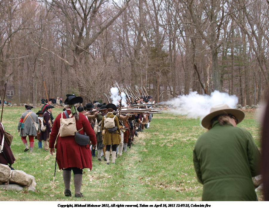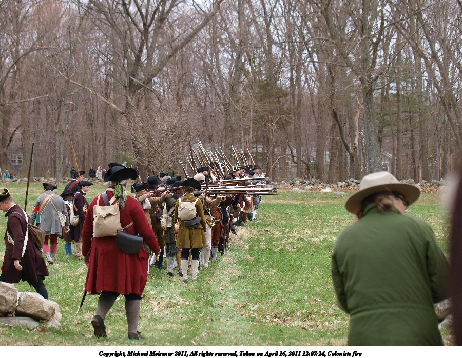 Picture #15: Colonists fire Thumb: 450x338, 54,498 bytes (54K) Small: 900x698, 158,484 bytes (155K), (html file) Copyright, Michael Meissner 2011, All rights reserved Olympus E-3 camera with Olympus 50-200mm f/2.8-3.5 lens and Olympus EC-14 (1.4x) f/4.0, ISO 100, 1/200 sec, 79.0mm, auto mode, natural color, SHQ, matrix metering, IS1 (All Direction Shake IS) 35mm equivalent focal length 158.0mm, EC-14 Programs used: raw therapee Taken by Michael Meissner on April 16, 2011 08:59:59 Last modified on April 20, 2011 at 19:36 |