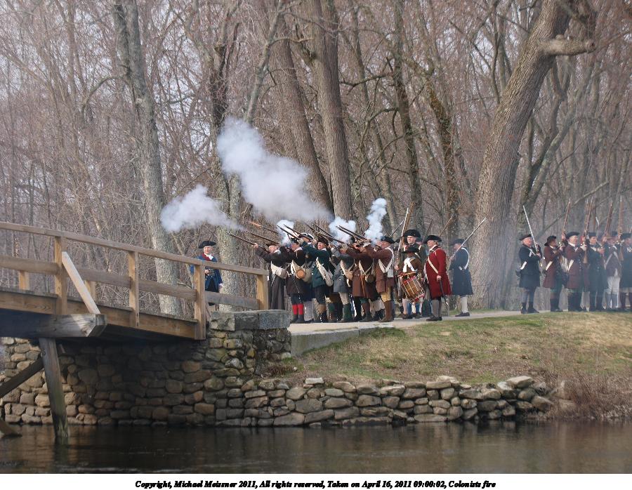 Picture #16: Colonists fire #2 Thumb: 450x338, 55,054 bytes (54K) Small: 900x698, 161,382 bytes (158K), (html file) Copyright, Michael Meissner 2011, All rights reserved Olympus E-3 camera with Olympus 50-200mm f/2.8-3.5 lens and Olympus EC-14 (1.4x) f/4.0, ISO 100, 1/200 sec, 79.0mm, auto mode, natural color, SHQ, matrix metering, IS1 (All Direction Shake IS) 35mm equivalent focal length 158.0mm, EC-14 Programs used: raw therapee Taken by Michael Meissner on April 16, 2011 09:00:02 Last modified on April 20, 2011 at 19:37 This picture is one of my favorites. |