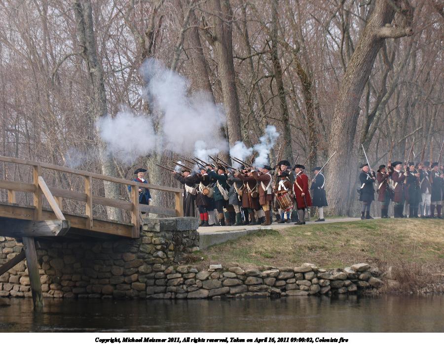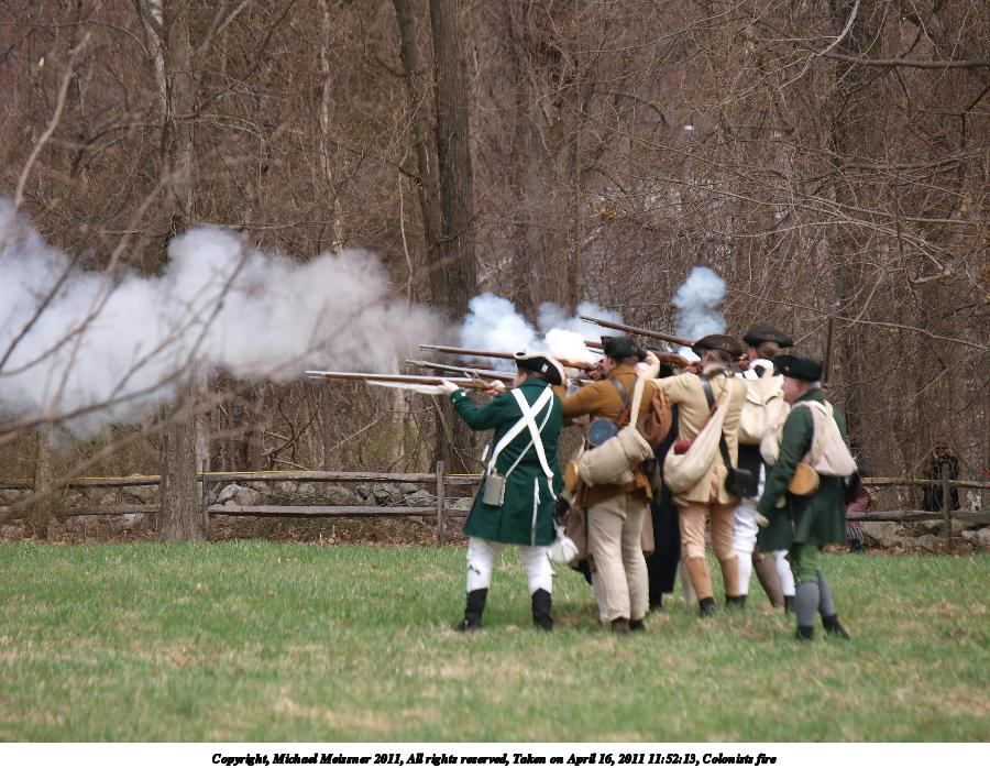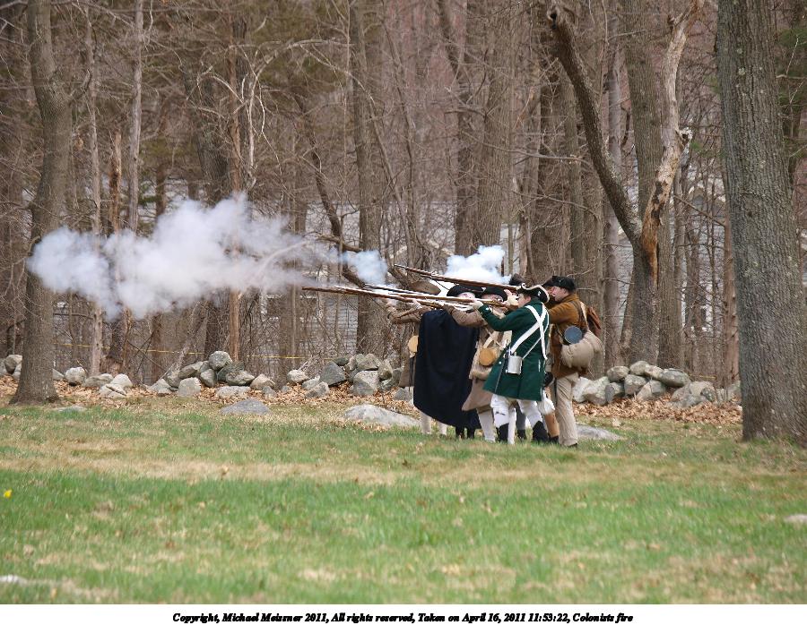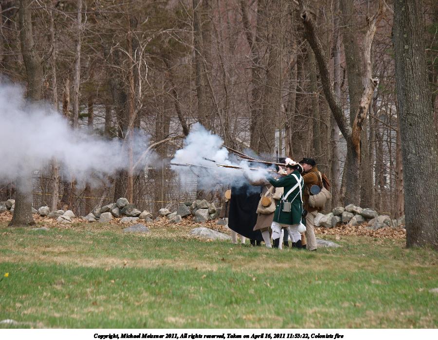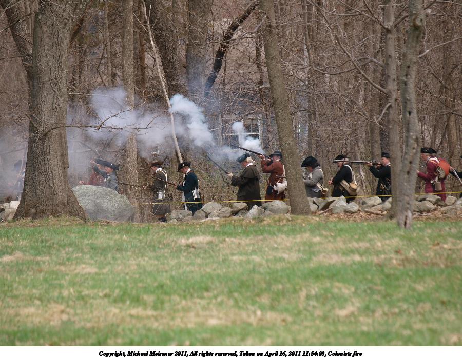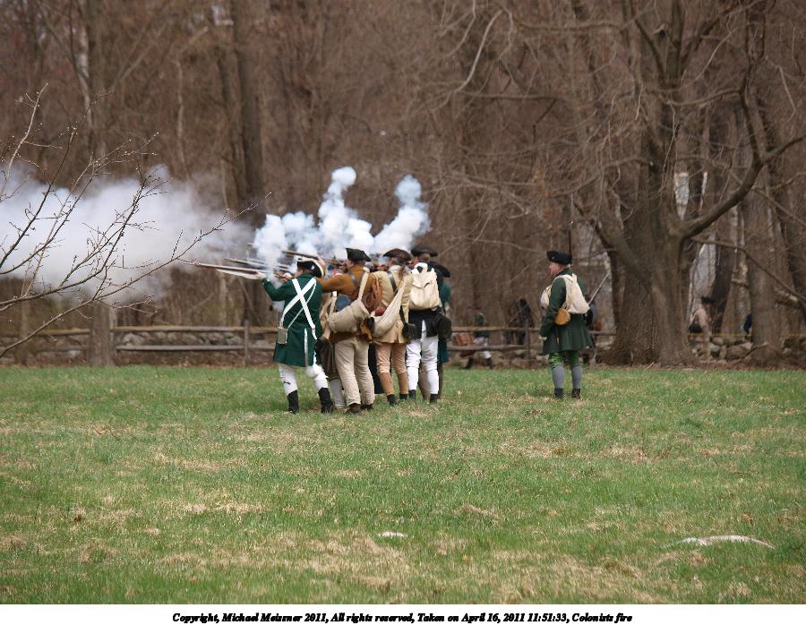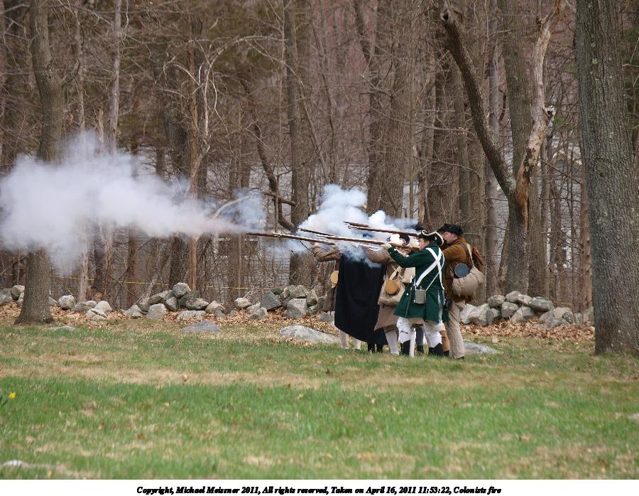 Picture #36: Colonists fire Thumb: 450x338, 51,074 bytes (50K) Small: 900x698, 146,979 bytes (144K), (html file) Copyright, Michael Meissner 2011, All rights reserved Olympus E-3 camera with Olympus 50-200mm f/2.8-3.5 lens f/4.0, ISO 100, 1/500 sec, 130.0mm, auto mode, natural color, SHQ, matrix metering, IS1 (All Direction Shake IS) 35mm equivalent focal length 260.0mm Programs used: raw therapee Taken by Michael Meissner on April 16, 2011 11:51:33 Last modified on April 23, 2011 at 09:28 |