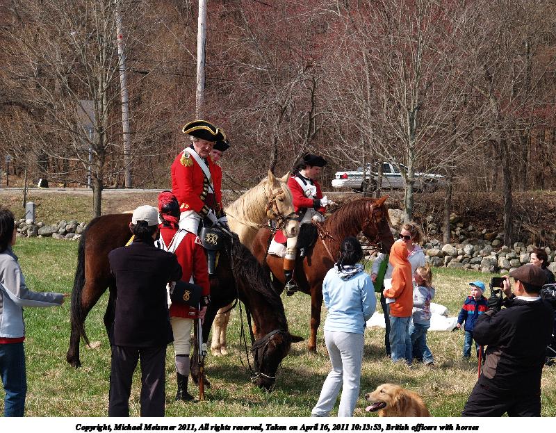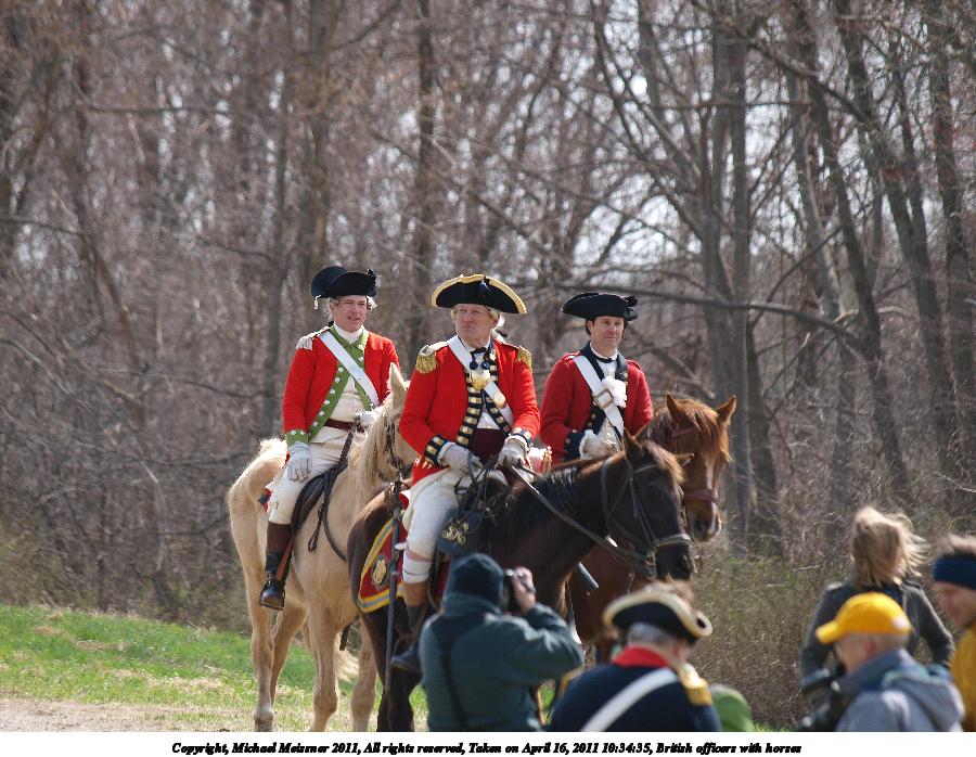 Picture #9: British officers Thumb: 450x338, 45,269 bytes (45K) Small: 900x698, 103,650 bytes (102K), (html file) Copyright, Michael Meissner 2011, All rights reserved Olympus E-3 camera with Olympus 50-200mm f/2.8-3.5 lens and Olympus EC-14 (1.4x) f/5.0, ISO 100, 1/400 sec, 158.0mm, auto mode, natural color, SHQ, matrix metering, IS1 (All Direction Shake IS) 35mm equivalent focal length 317.0mm, EC-14 Programs used: raw therapee Taken by Michael Meissner on April 16, 2011 08:52:57 Last modified on April 20, 2011 at 19:34 |