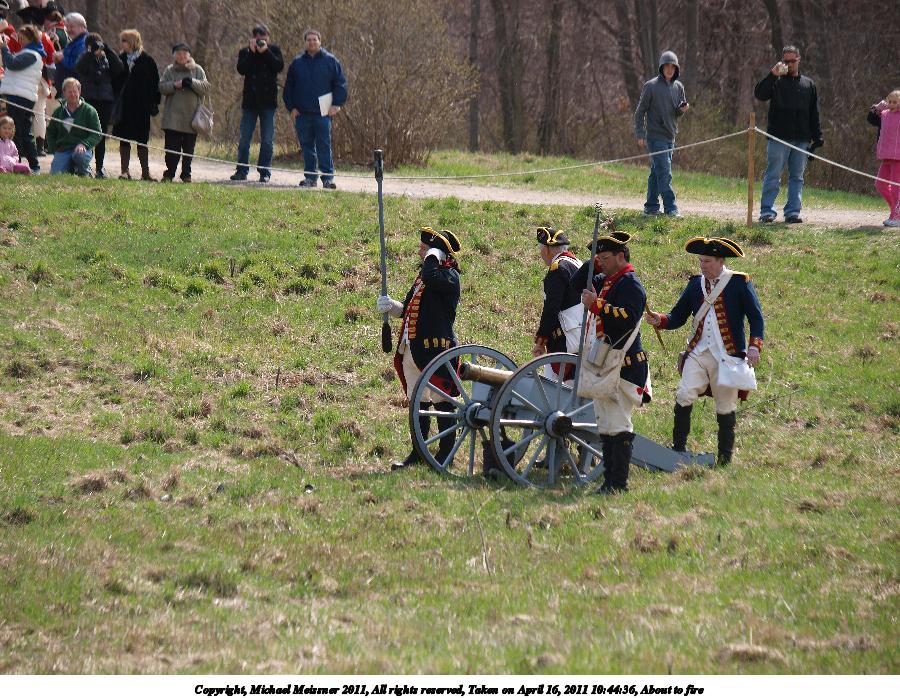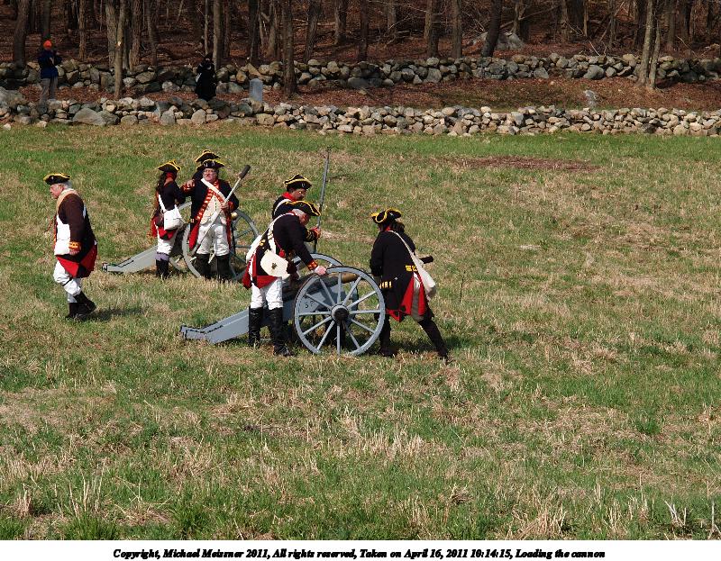 Picture #16: Loading the cannon #2 Thumb: 450x338, 61,537 bytes (61K) Small: 900x698, 166,877 bytes (163K), (html file) Copyright, Michael Meissner 2011, All rights reserved Olympus E-3 camera with Olympus 50-200mm f/2.8-3.5 lens f/4.0, ISO 100, 1/500 sec, 137.0mm, auto mode, natural color, SHQ, matrix metering, IS1 (All Direction Shake IS) 35mm equivalent focal length 274.0mm Programs used: raw therapee Taken by Michael Meissner on April 16, 2011 10:44:55 Last modified on April 23, 2011 at 09:22 |