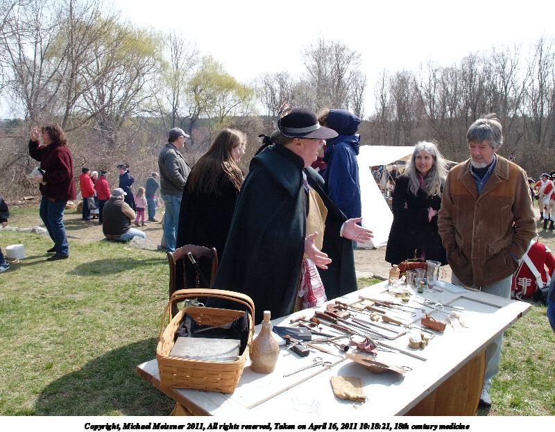 Picture #3: 18th century medicine Thumb: 480x360, 59,840 bytes (59K) Small: 800x623, 137,328 bytes (135K), (html file) Copyright, Michael Meissner 2011, All rights reserved Olympus E-1 camera with Olympus 14-54mm f/2.8-3.5 lens f/7.1, ISO 100, 1/200 sec, 14.0mm, auto mode, SHQ, matrix metering, +2 contrast, +2 sharpening 35mm equivalent focal length 28.0mm Programs used: gimp Taken by Michael Meissner on April 16, 2011 10:18:21 Last modified on April 23, 2011 at 09:18 |