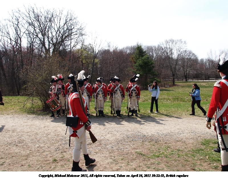 Picture #51: British regulars #3 Thumb: 450x338, 63,623 bytes (63K) Small: 900x698, 179,392 bytes (176K), (html file) Copyright, Michael Meissner 2011, All rights reserved Olympus E-3 camera with Olympus 50-200mm f/2.8-3.5 lens f/4.5, ISO 100, 1/320 sec, 56.0mm, auto mode, natural color, SHQ, matrix metering, IS1 (All Direction Shake IS) 35mm equivalent focal length 112.0mm Programs used: raw therapee Taken by Michael Meissner on April 16, 2011 11:58:53 Last modified on April 23, 2011 at 09:31 |