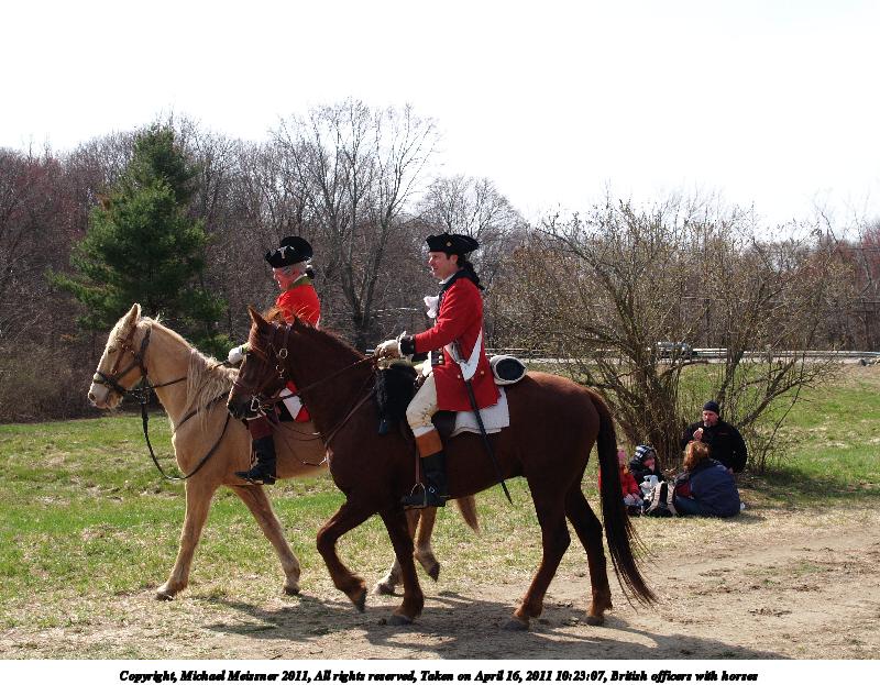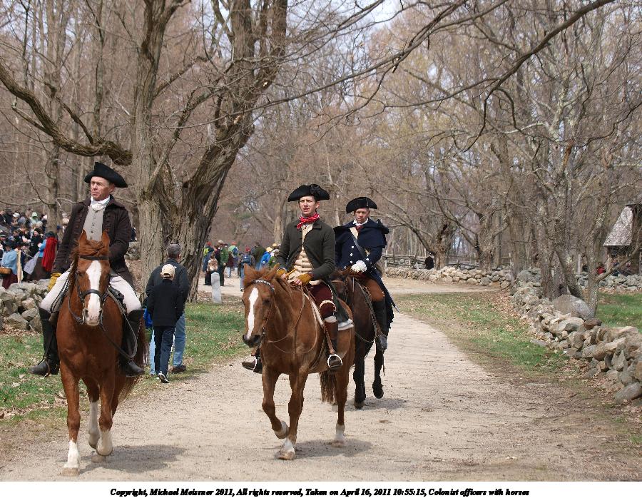Picture #20: Colonist officers with horses Thumb: 450x338, 61,265 bytes (60K) Small: 900x698, 190,457 bytes (186K), (html file) Copyright, Michael Meissner 2011, All rights reserved Olympus E-3 camera with Olympus 50-200mm f/2.8-3.5 lens f/4.5, ISO 100, 1/320 sec, 54.0mm, auto mode, natural color, SHQ, matrix metering, IS1 (All Direction Shake IS) 35mm equivalent focal length 108.0mm Programs used: raw therapee Taken by Michael Meissner on April 16, 2011 10:55:15 Last modified on April 23, 2011 at 09:23 |