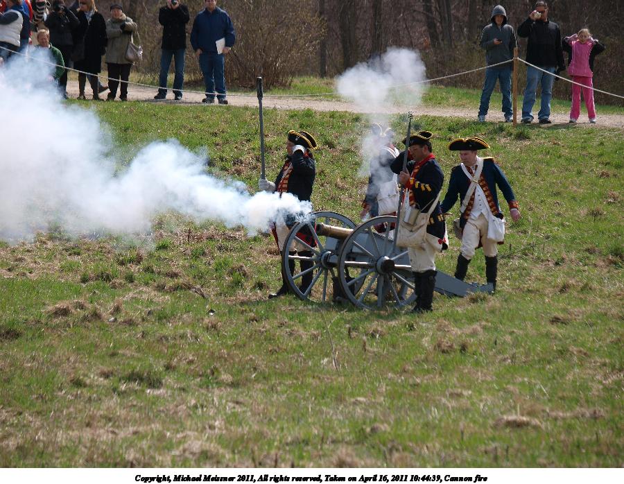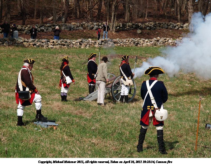Picture #17: Cannon fire #4 Thumb: 450x338, 62,177 bytes (61K) Small: 900x698, 178,276 bytes (175K), (html file) Copyright, Michael Meissner 2011, All rights reserved Olympus E-3 camera with Olympus 50-200mm f/2.8-3.5 lens f/4.5, ISO 100, 1/400 sec, 83.0mm, auto mode, natural color, SHQ, matrix metering, IS1 (All Direction Shake IS) 35mm equivalent focal length 166.0mm Programs used: raw therapee Taken by Michael Meissner on April 16, 2011 10:46:02 Last modified on April 23, 2011 at 09:22 This picture is one of my favorites. |