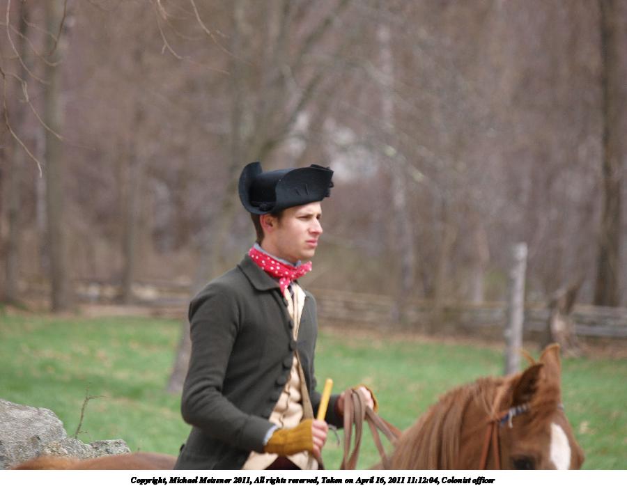 Picture #21: Colonist officer Thumb: 450x338, 33,888 bytes (34K) Small: 900x698, 67,626 bytes (67K), (html file) Copyright, Michael Meissner 2011, All rights reserved Olympus E-3 camera with Olympus 50-200mm f/2.8-3.5 lens f/3.2, ISO 100, 1/320 sec, 158.0mm, auto mode, natural color, SHQ, matrix metering, IS1 (All Direction Shake IS) 35mm equivalent focal length 317.0mm Programs used: raw therapee Taken by Michael Meissner on April 16, 2011 11:12:04 Last modified on April 23, 2011 at 09:23 |